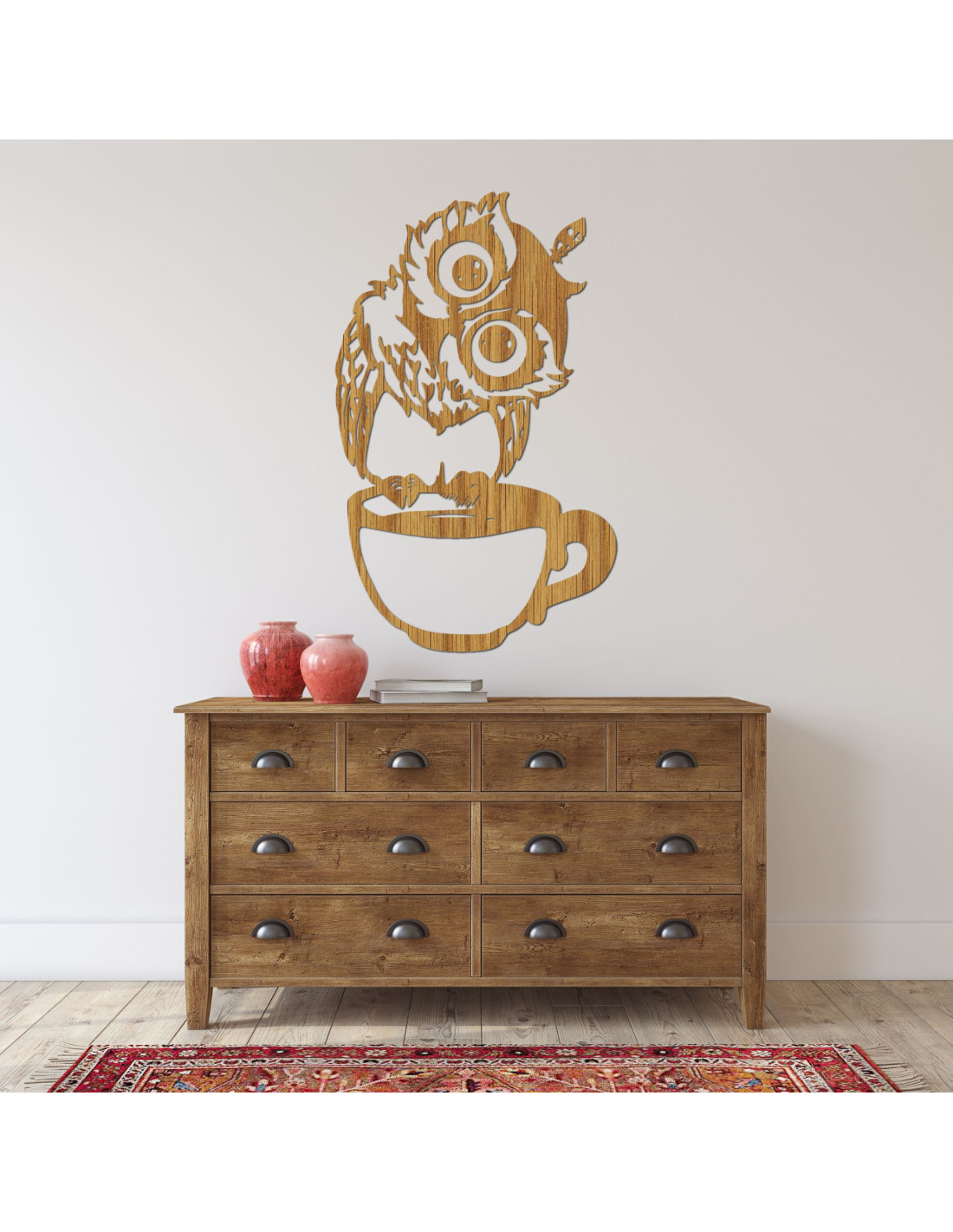 Dřevěná sova sedící na šálku okamžitě rozjasní každý prostor a přinese úsměv na tvář. Se svýma velkýma očima a hravým designem dokonale doplní váš domov o kousek přírody a pohody. Perfektně se hodí na zeď, poličku či jako dárek pro milovníky originálních kousků. Ať už hledáte něco, co zútulní váš prostor, nebo jen chcete vnést trošku lesní atmosféry do vašeho domova.
