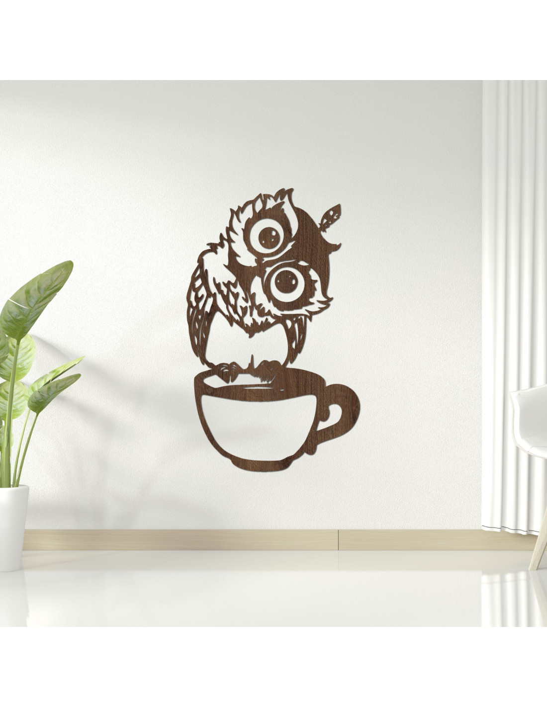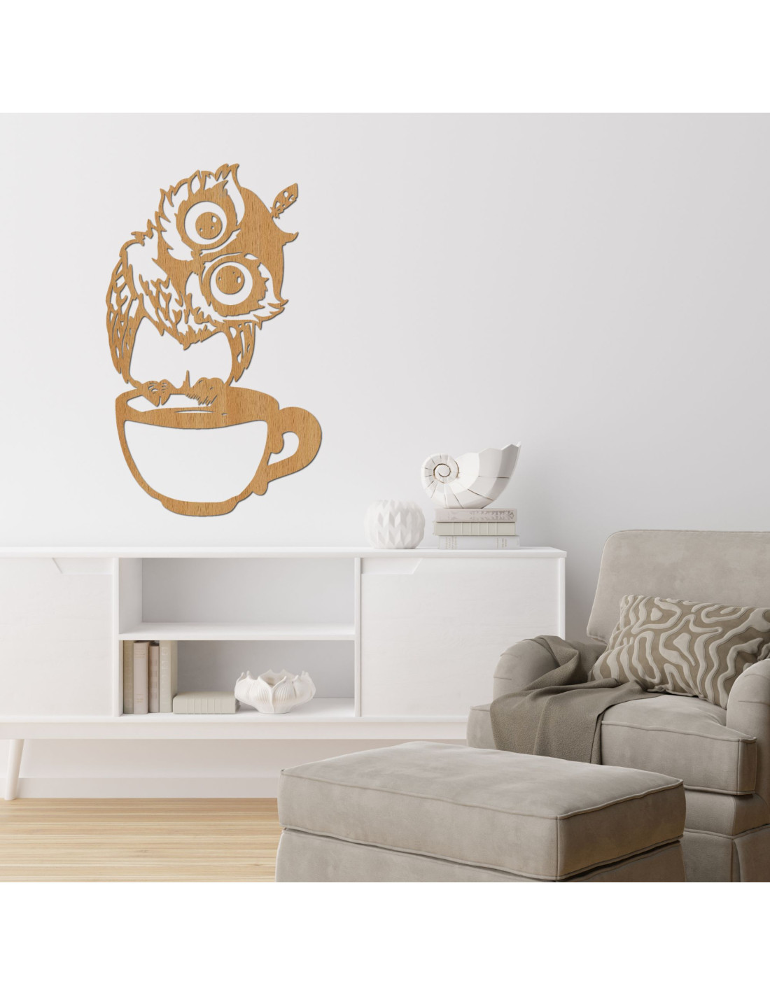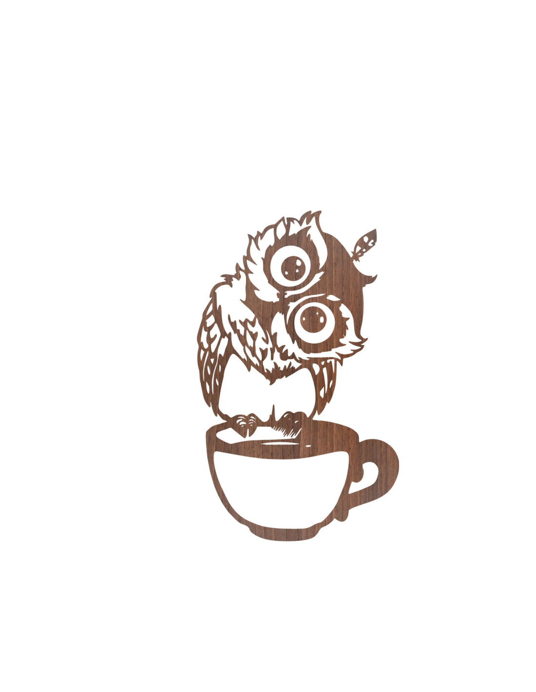 Dřevěný roztomilý obraz na zeď sova v šálku | Sova