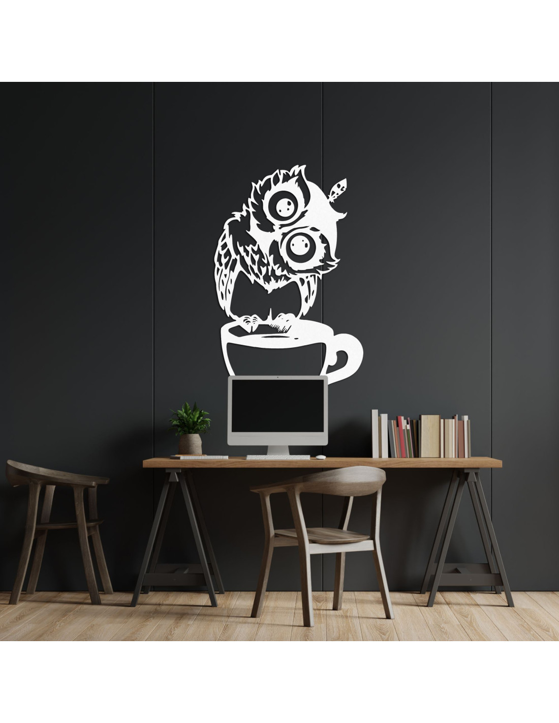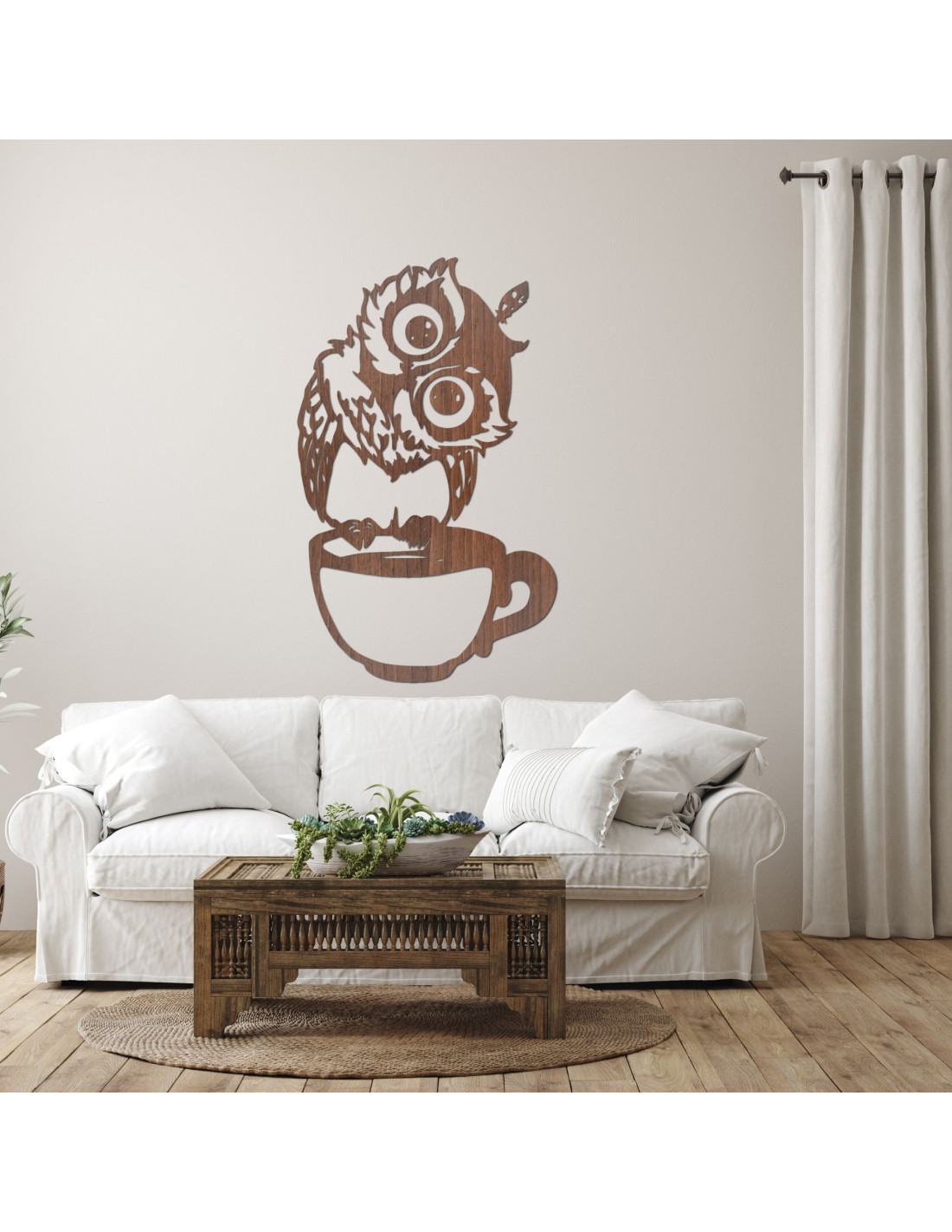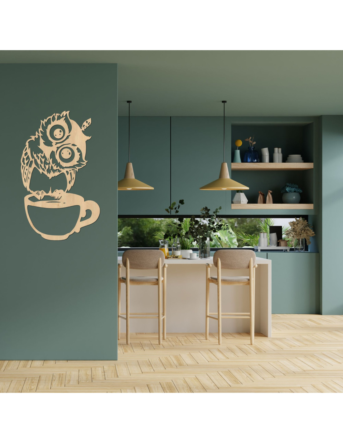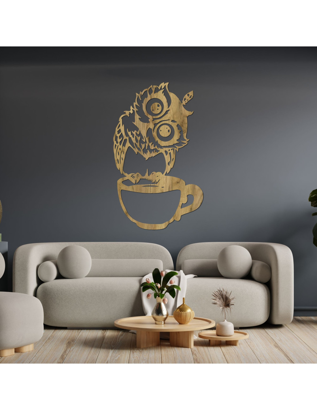 Dřevěný roztomilý obraz na zeď sova v šálku | Sova