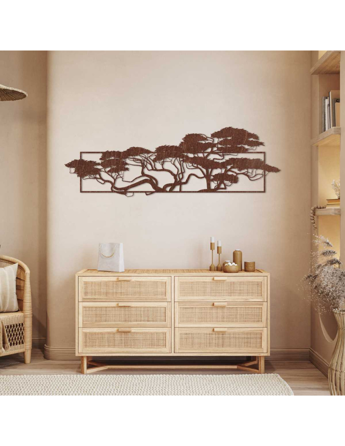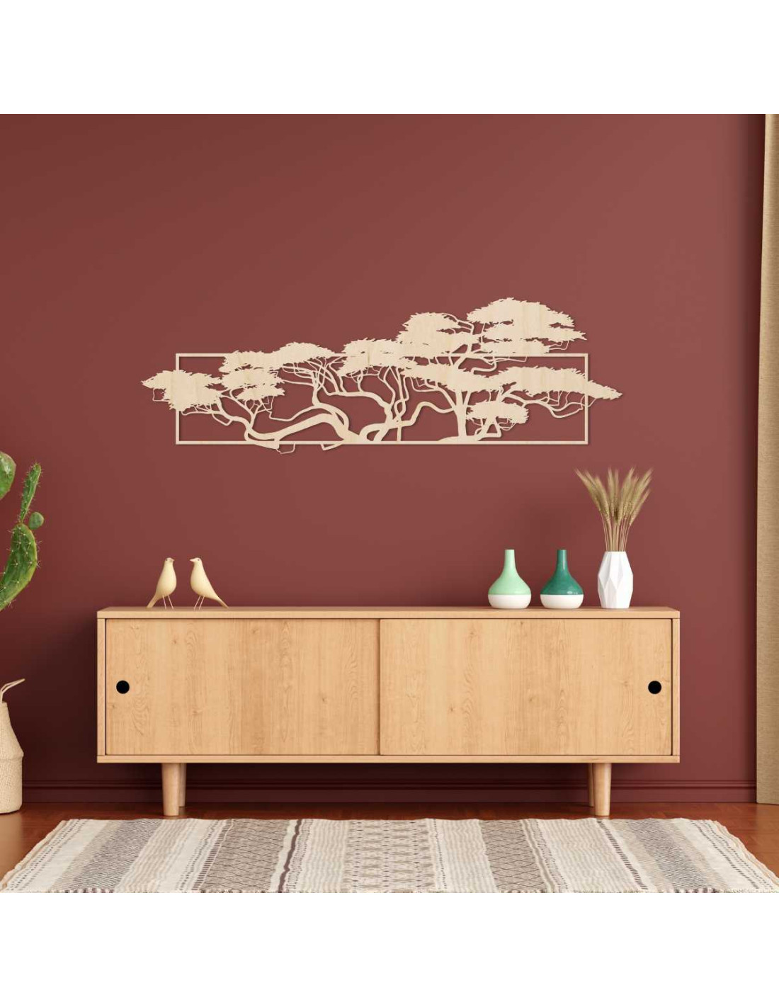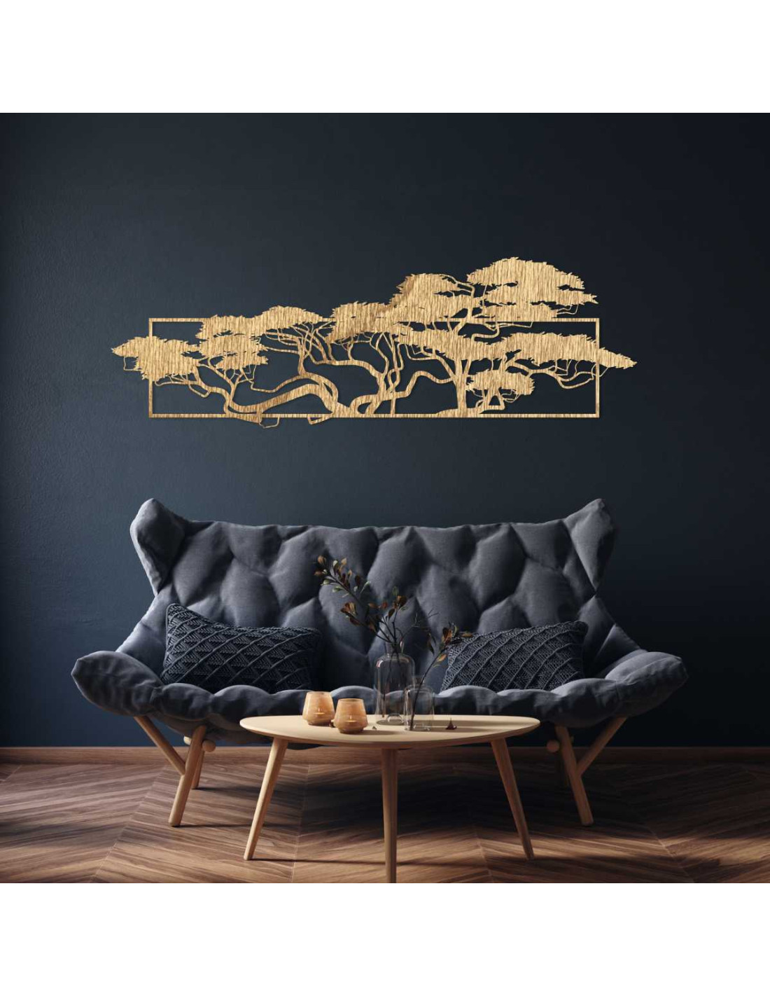 Tento dřevěný obraz s přírodním motivem stromů je originální nástěnná dekorace , která vyniká elegantním designem a kvalitním řemeslným zpracováním.