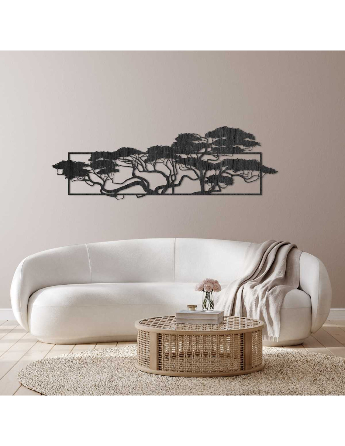 Designový dřevěný obraz s motivem stromů představuje harmonické spojení přírody, estetiky a moderního interiérového designu.