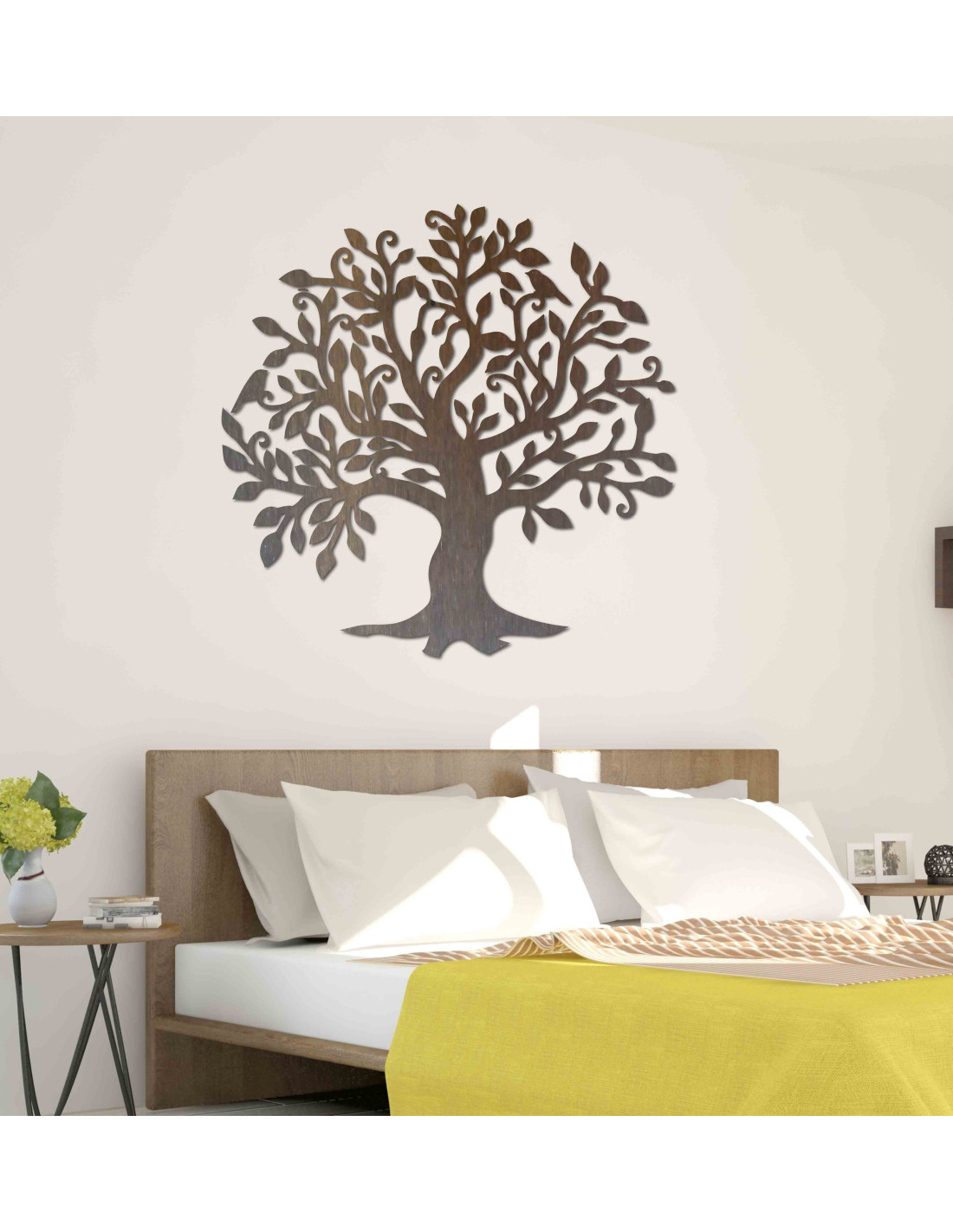 Dřevěná dekorace na zeď ve tvaru stromu života je stylovým a elegantním doplňkem, který oživí každý interiér.