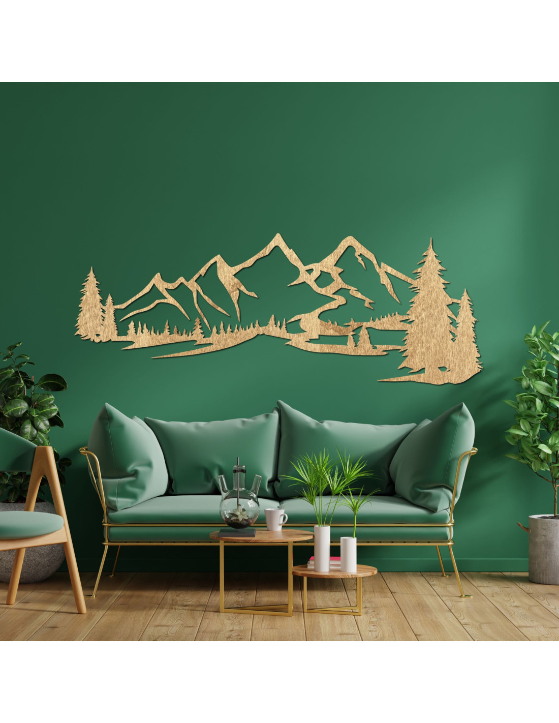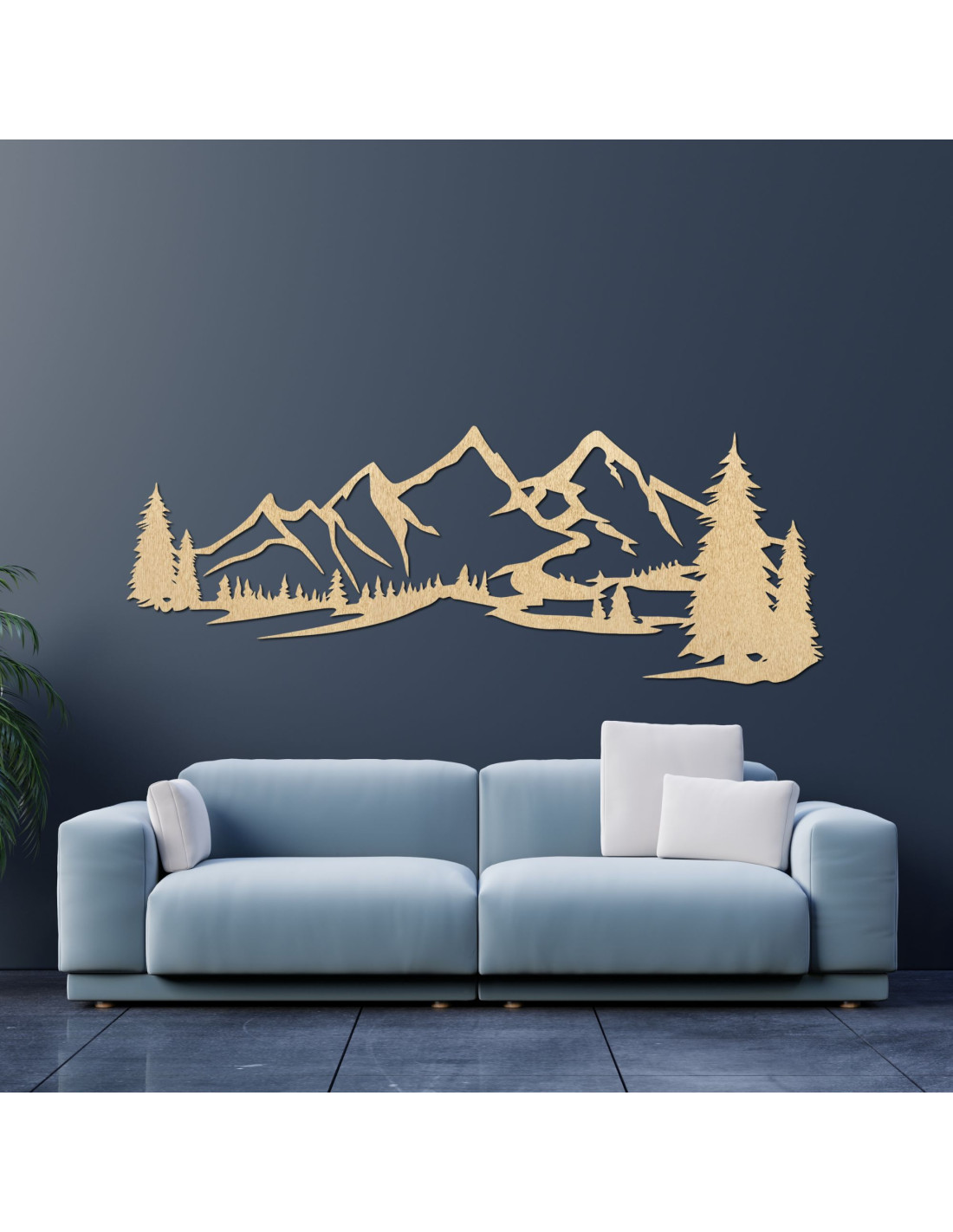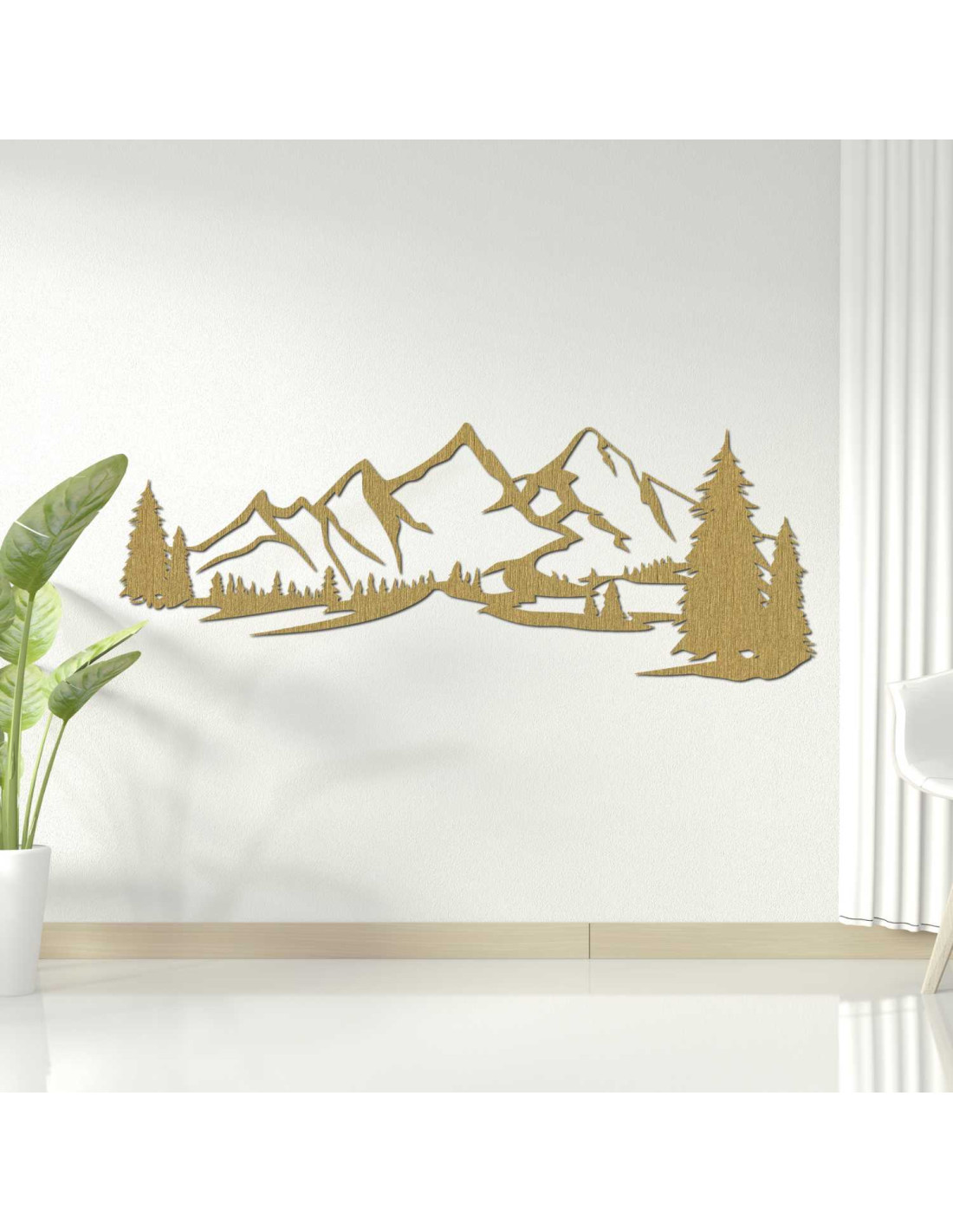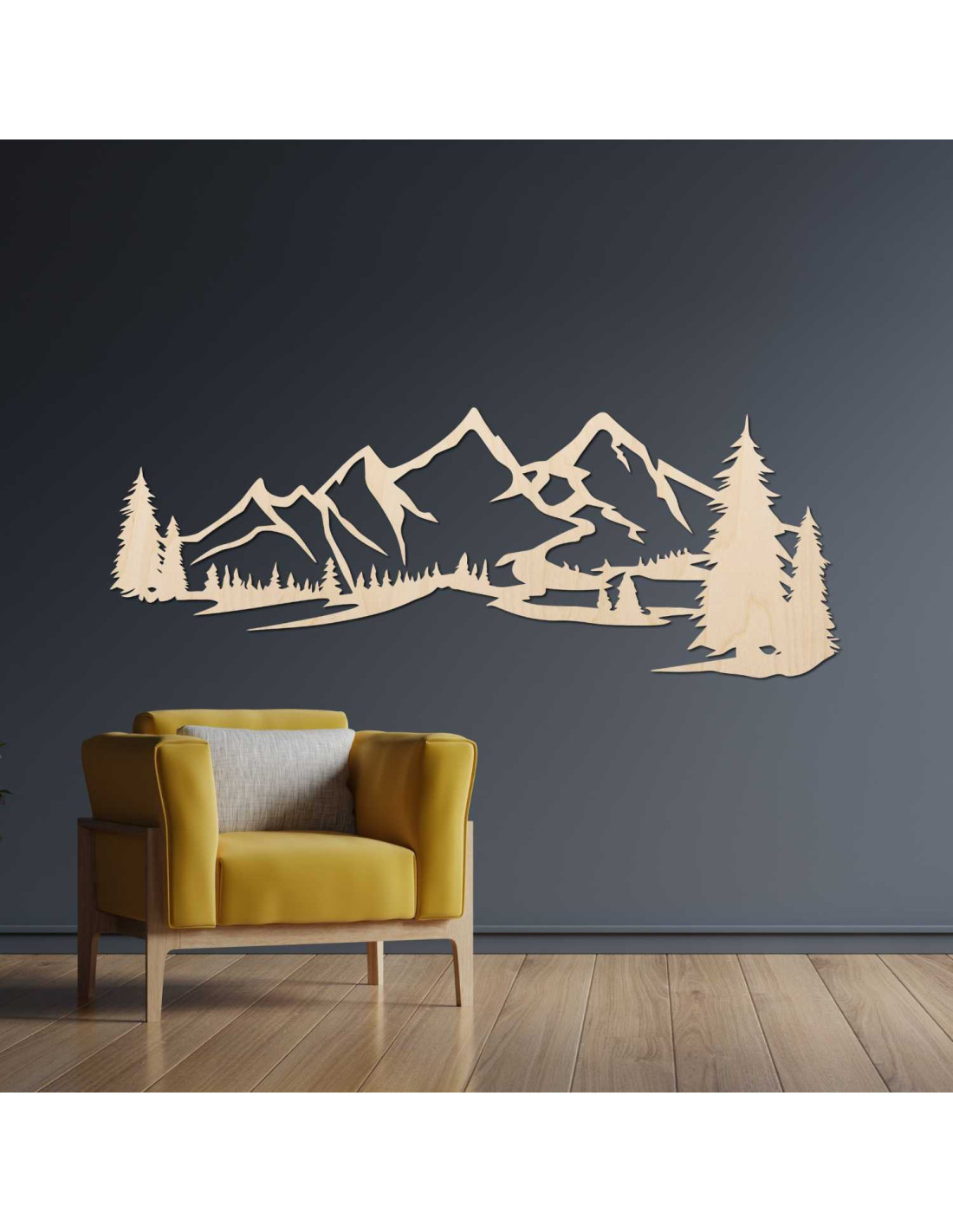 Dřevěná dekorace Hory a les je jedinečný designový prvek, který okamžitě upoutá pozornost svojí detailní laserovou tvorbou a přírodním vzhledem.