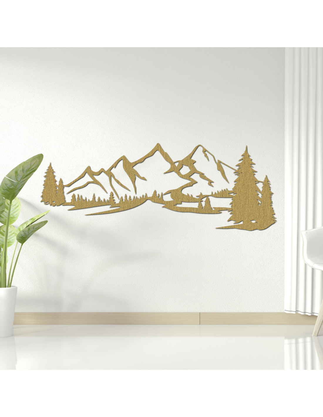 Dřevěná dekorace Hory a les je jedinečný designový prvek, který okamžitě upoutá pozornost svojí detailní laserovou tvorbou a přírodním vzhledem.