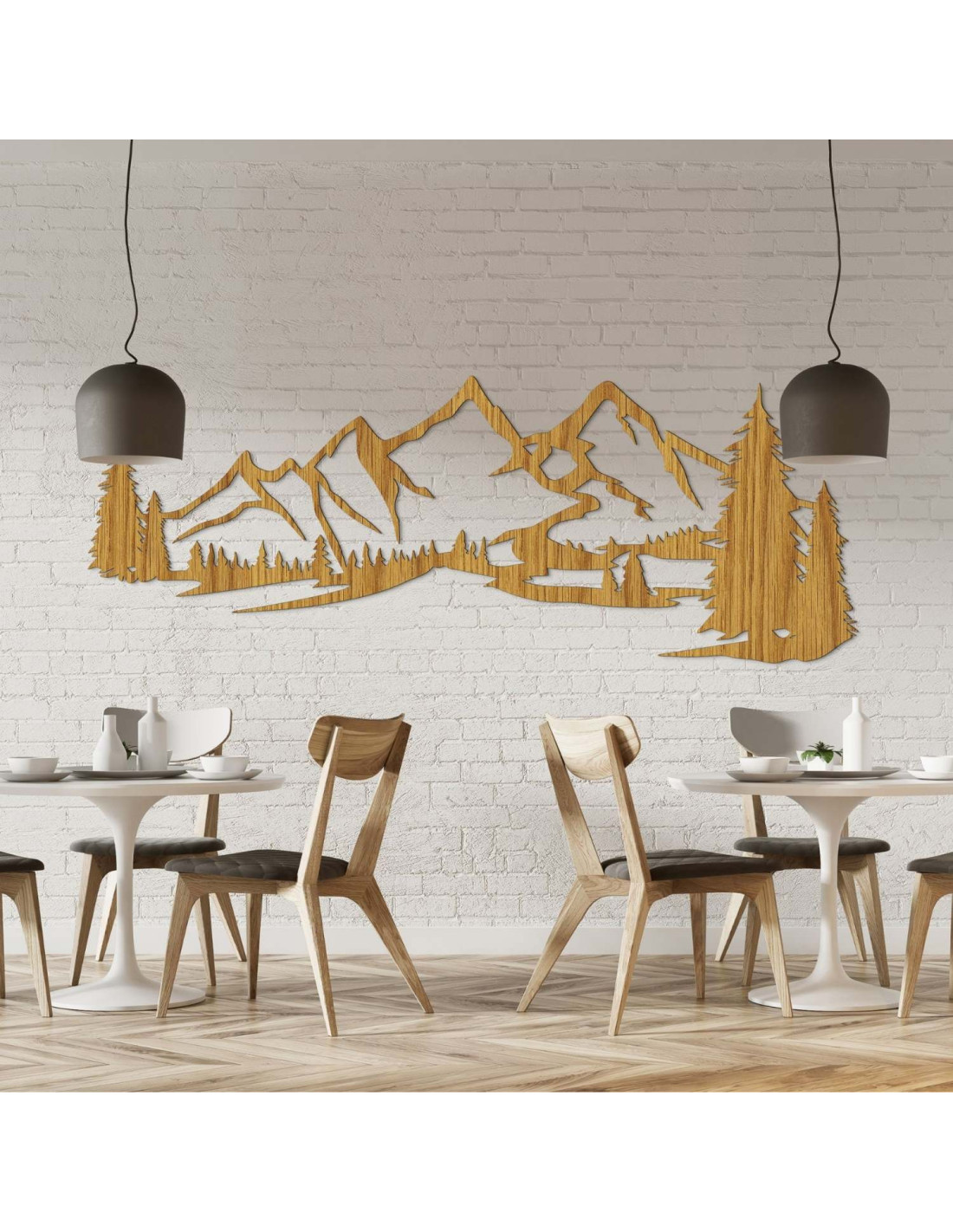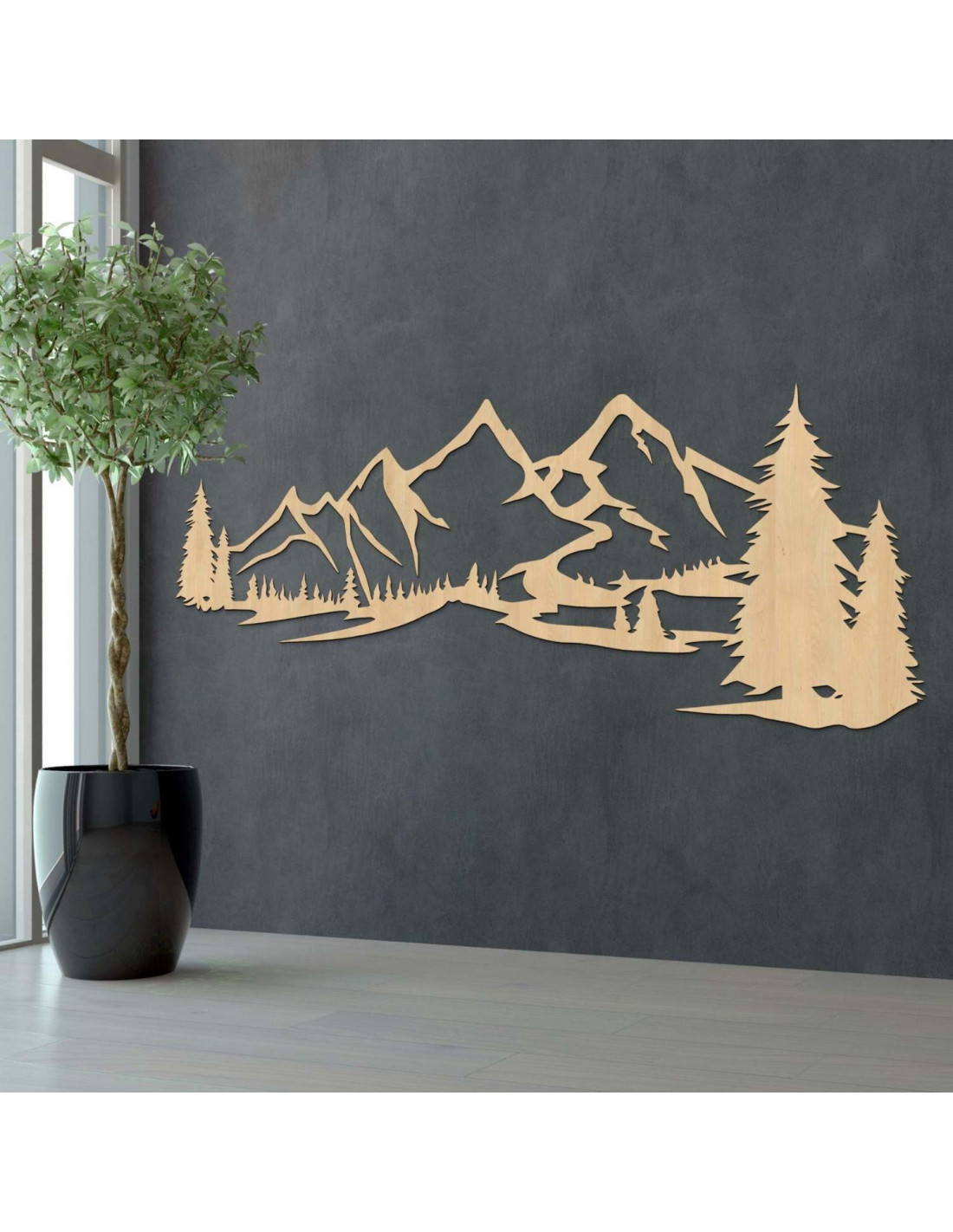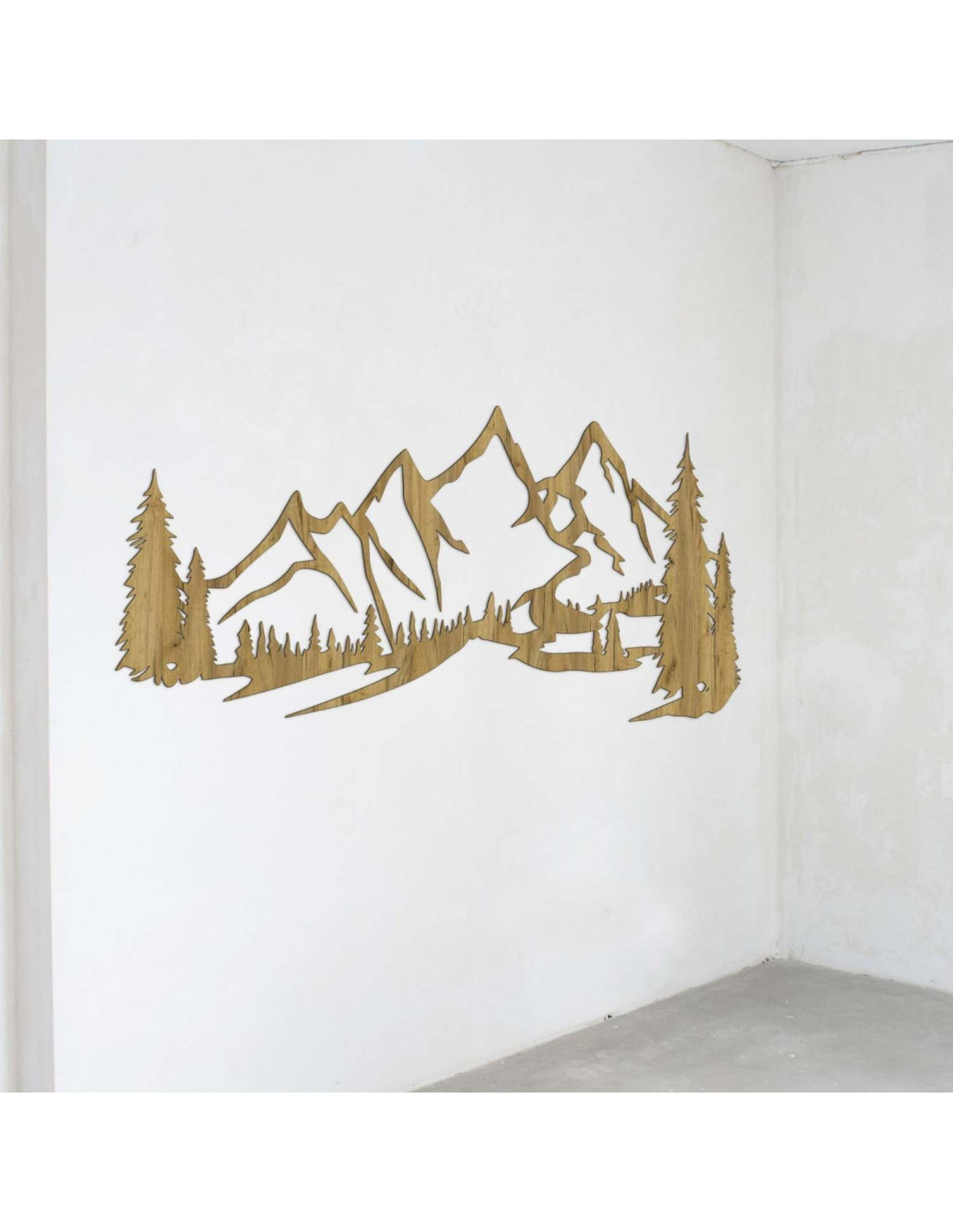 Dřevěná dekorace na zeď s motivem hor a lesa je elegantní a moderní prvek, který přinese do vašeho domova harmonický dotek přírody. Dřevěný obraz na zeď – Hory a les zvýrazní každý obývací pokoj a dodá jí jedinečný přírodní charakter.