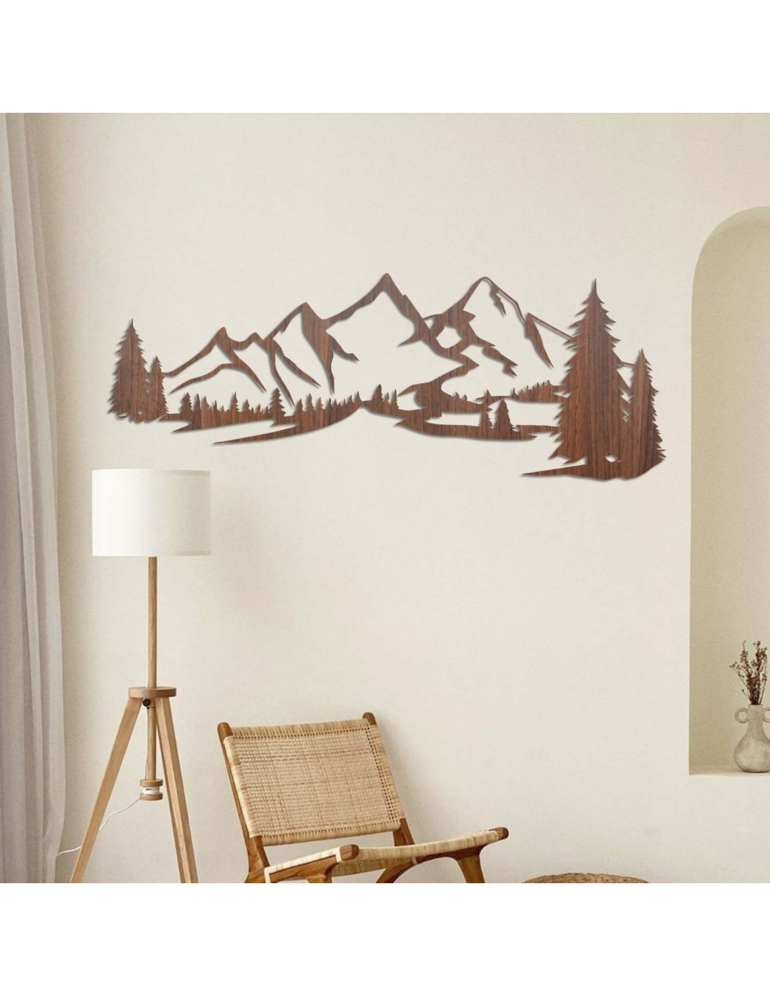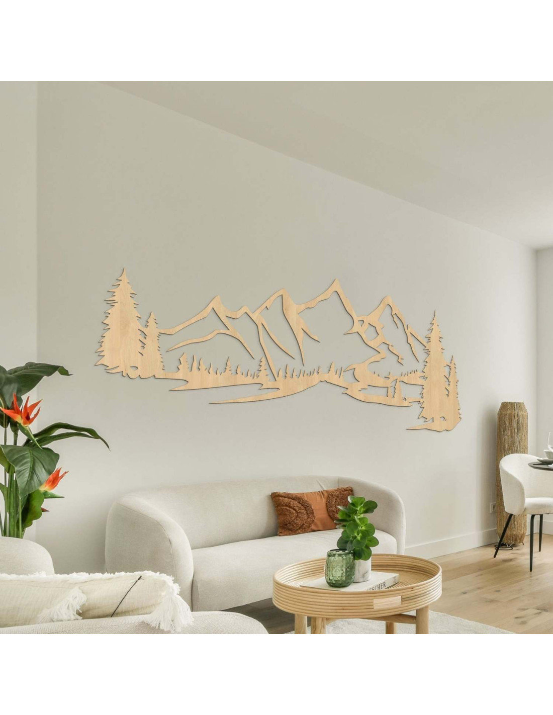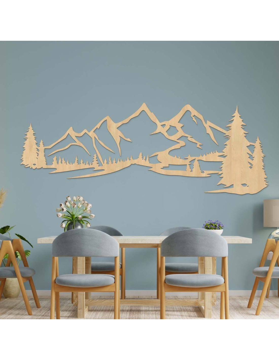 Dřevěná dekorace na zeď s motivem hor a lesa je elegantní a moderní prvek, který přinese do vašeho domova harmonický dotek přírody. Dřevěný obraz na zeď – Hory a les zvýrazní každý obývací pokoj a dodá jí jedinečný přírodní charakter.