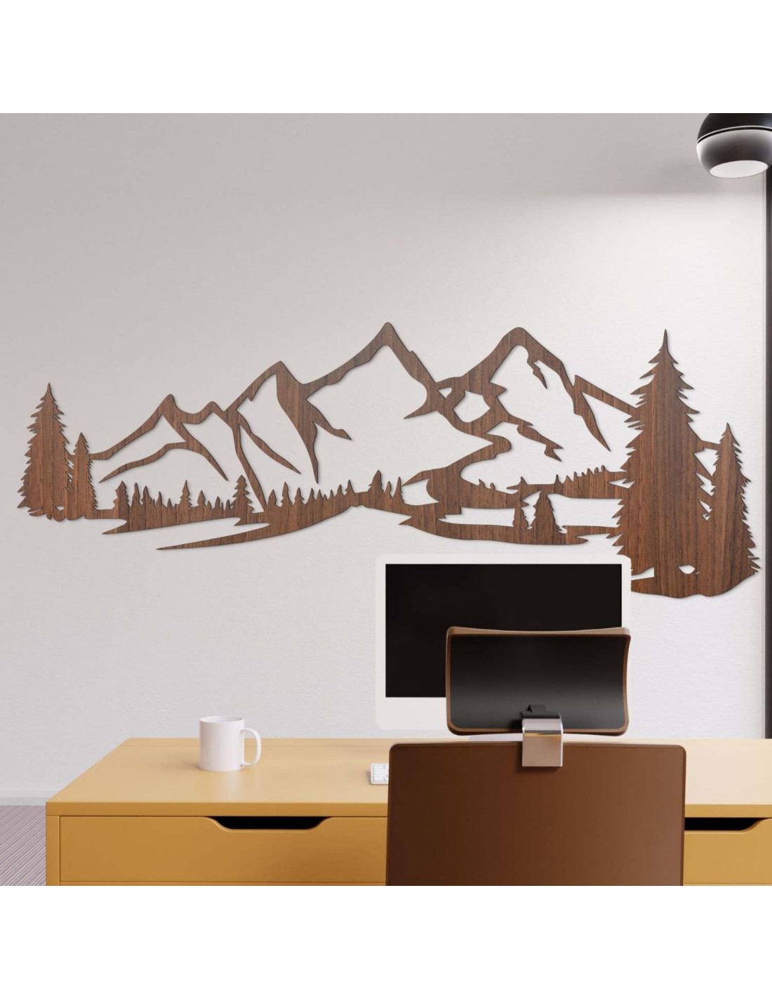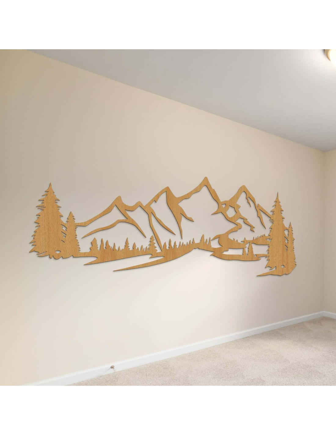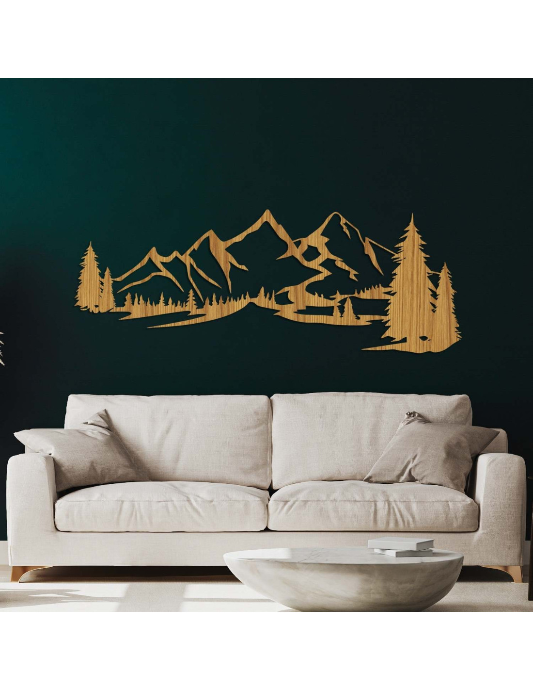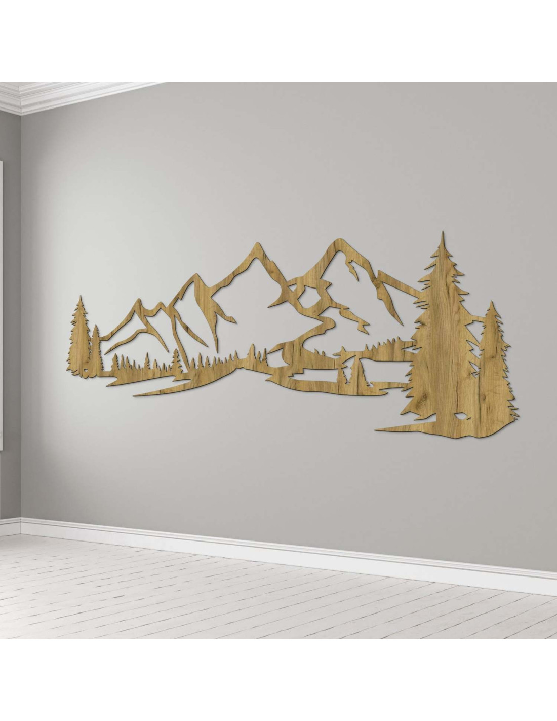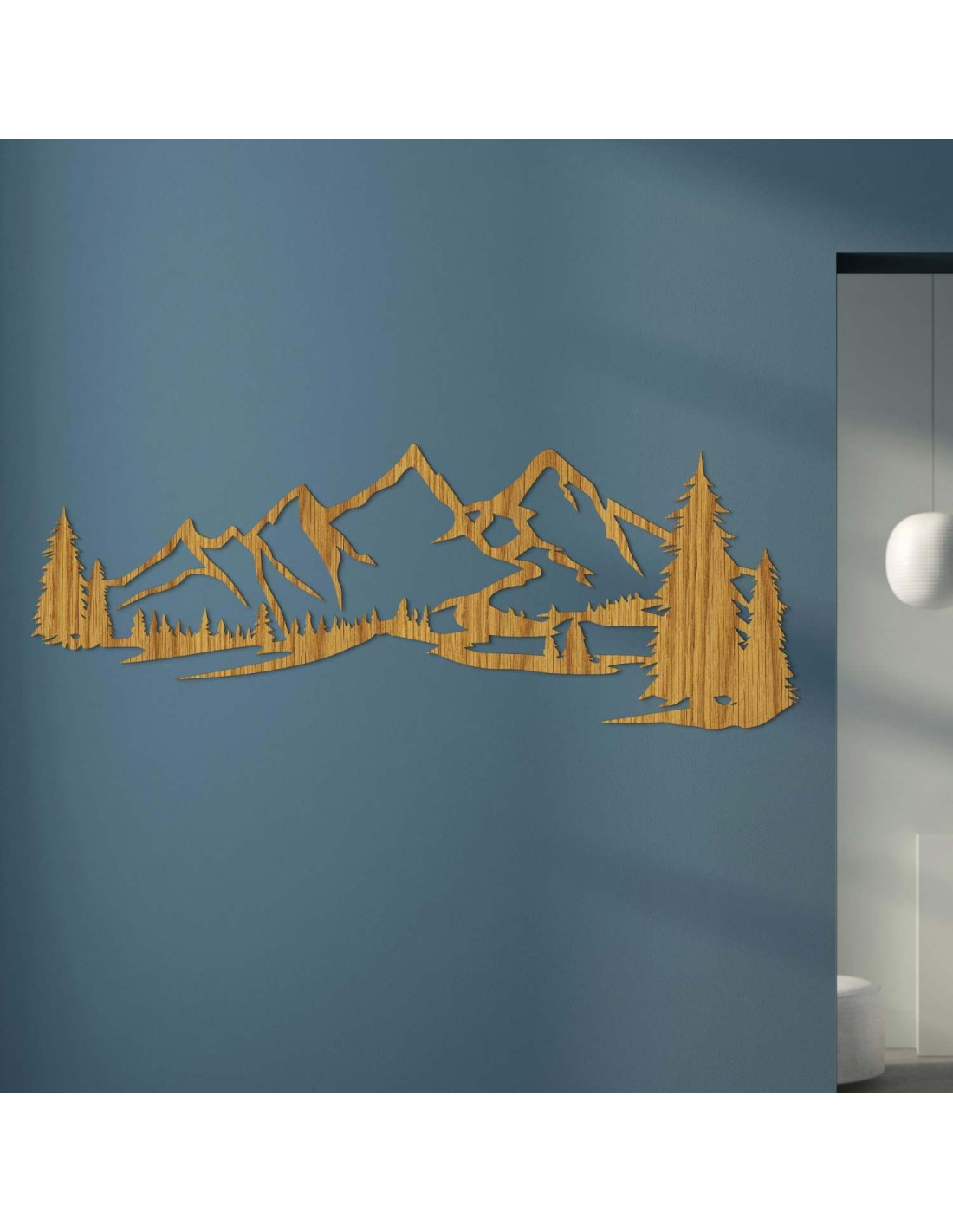 Kombinace horské krajiny, jehličnatých stromů a precizního laserového řezu vytváří výraznou estetickou dominantu, která krásně vynikne v obýváku, ložnici, pracovně i na chodbě.