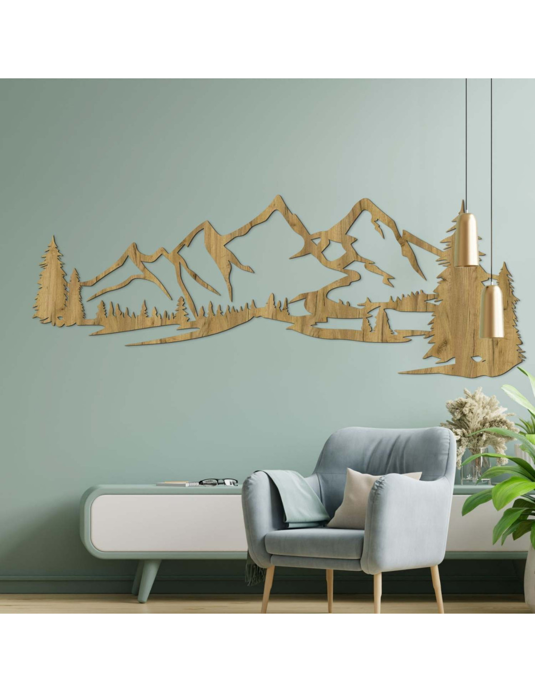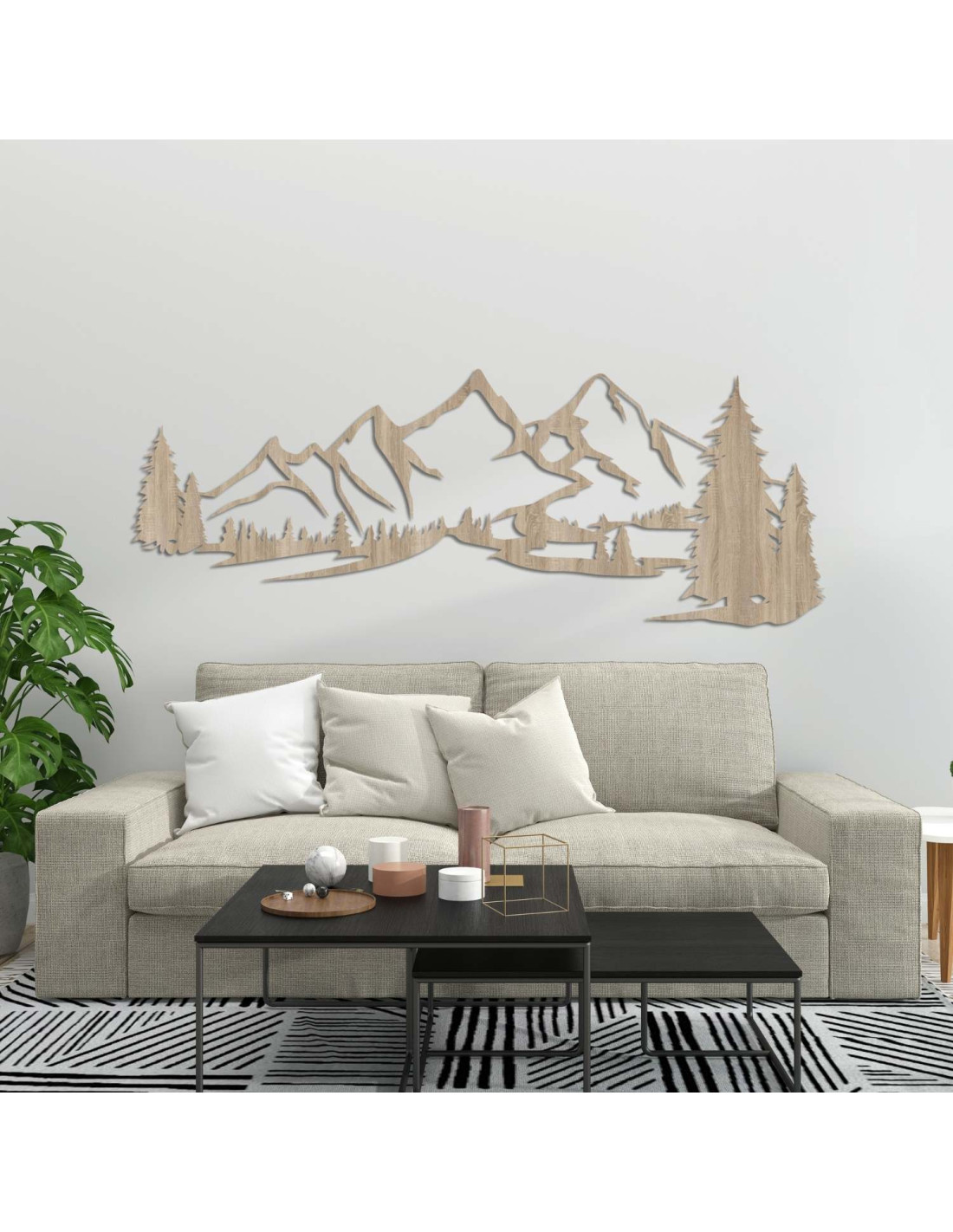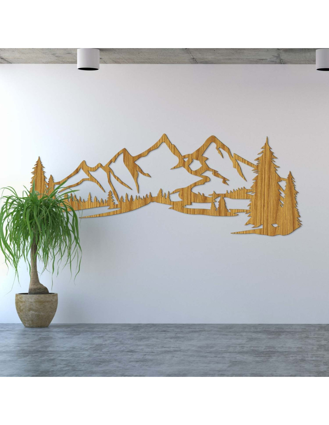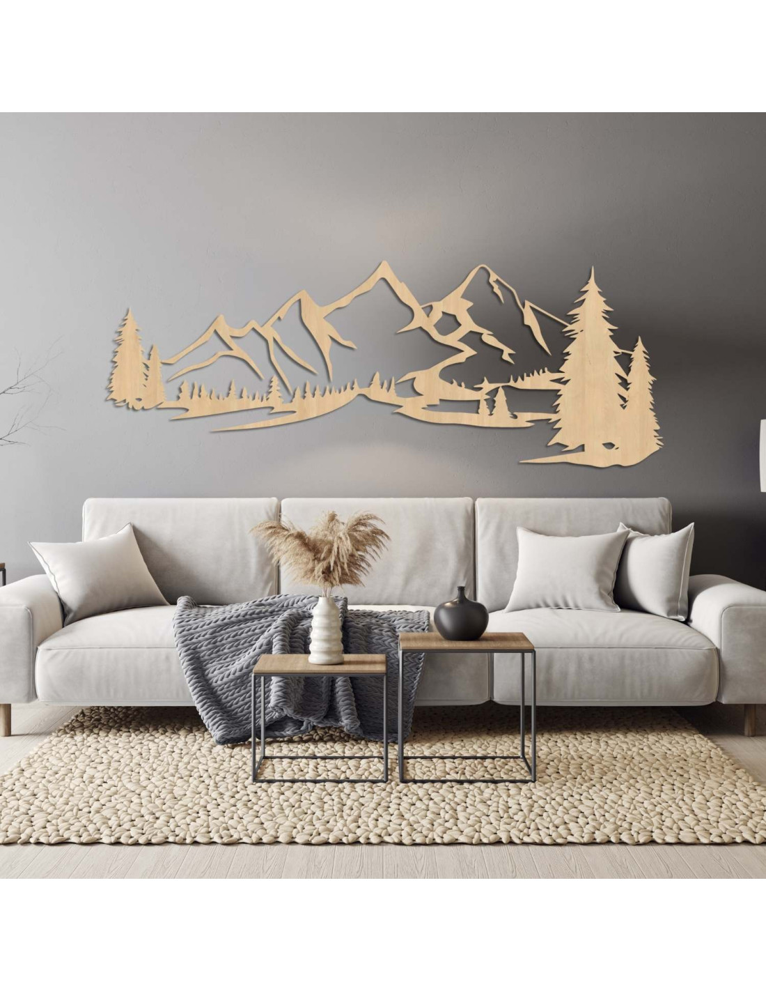 Kombinace horské krajiny, jehličnatých stromů a precizního laserového řezu vytváří výraznou estetickou dominantu, která krásně vynikne v obýváku, ložnici, pracovně i na chodbě.
