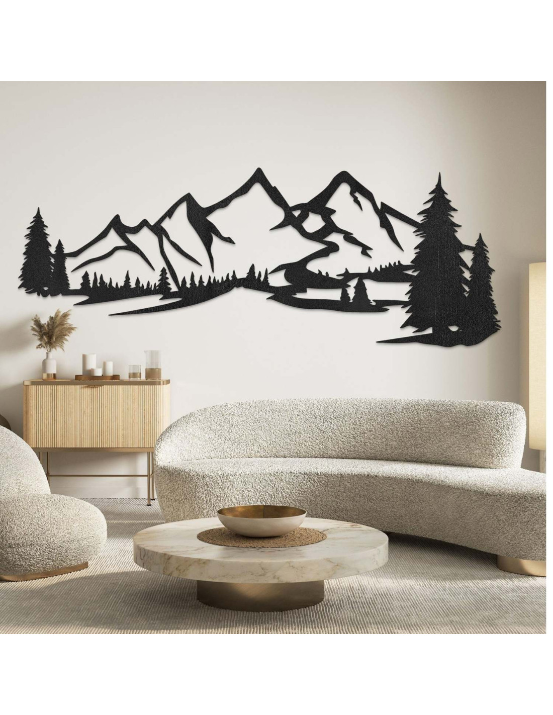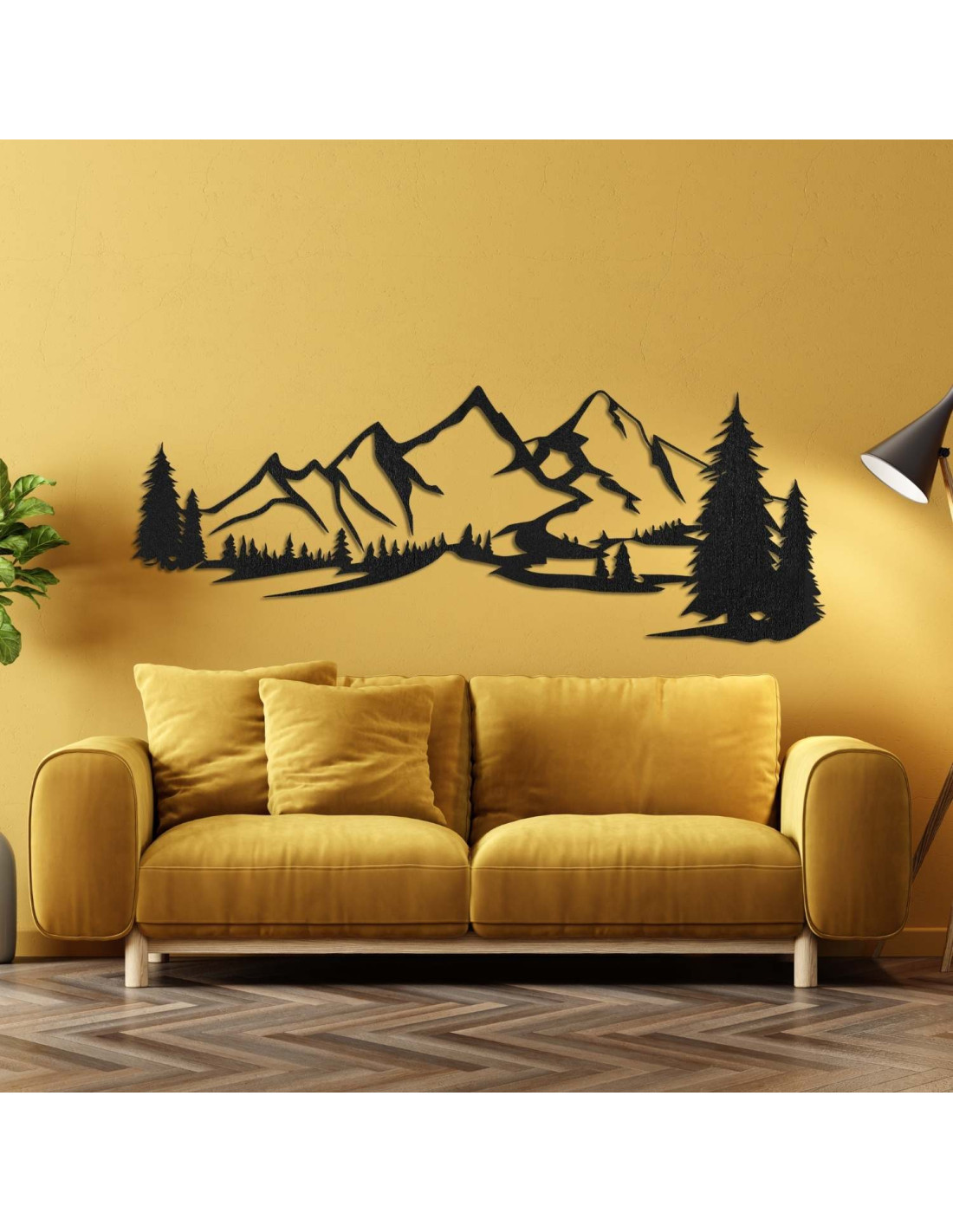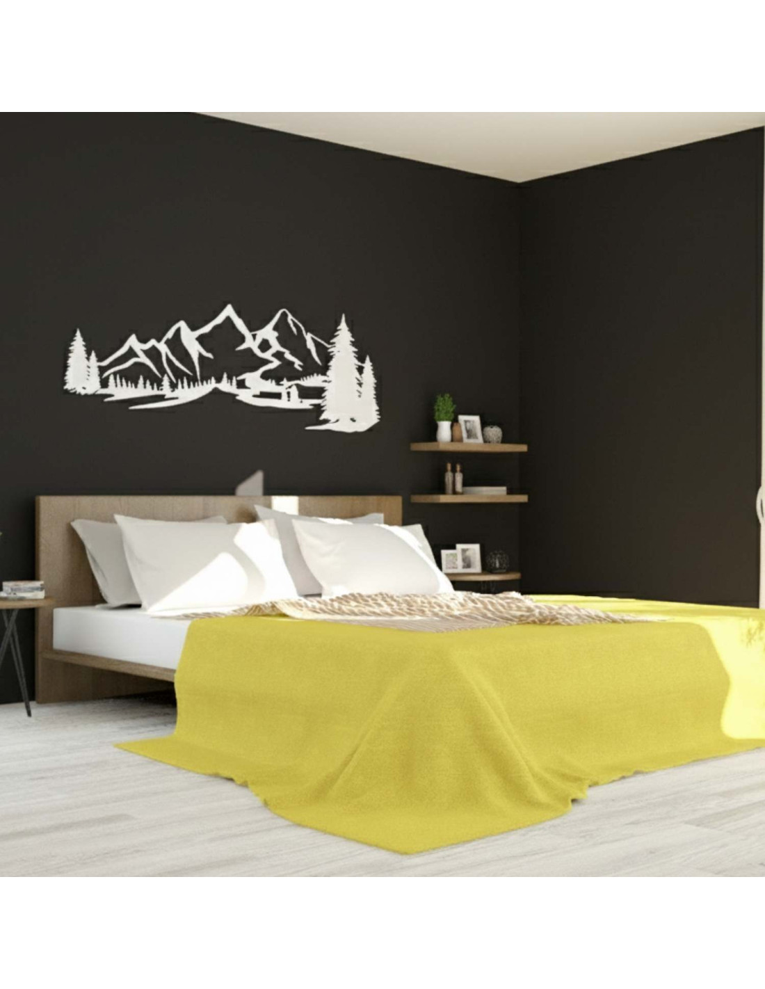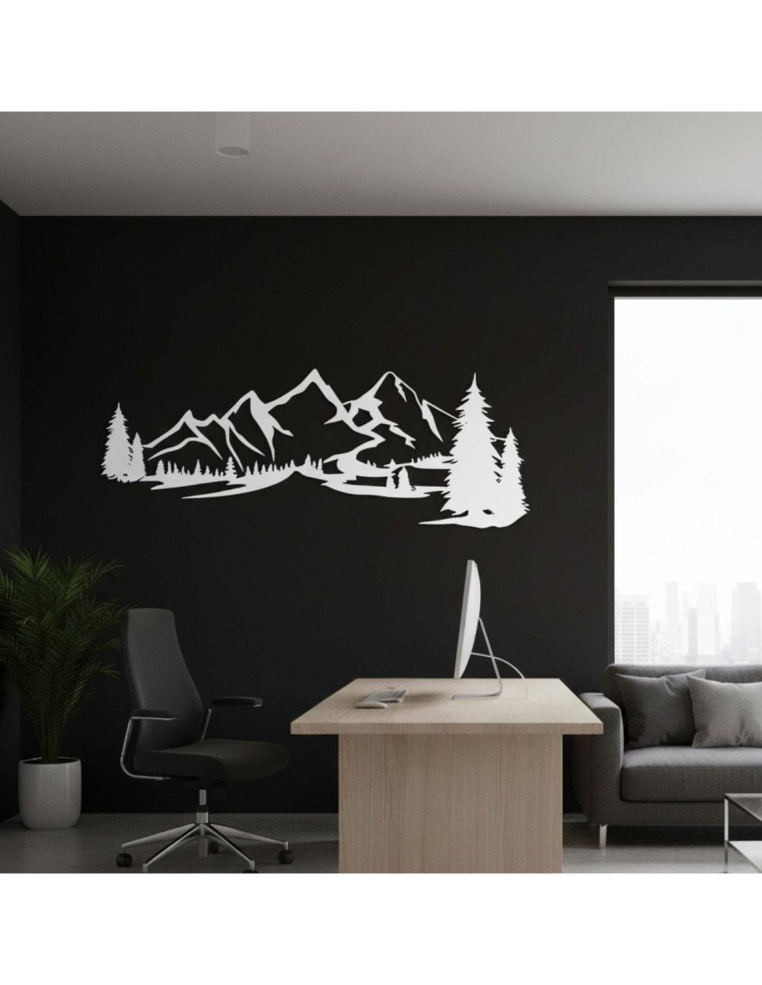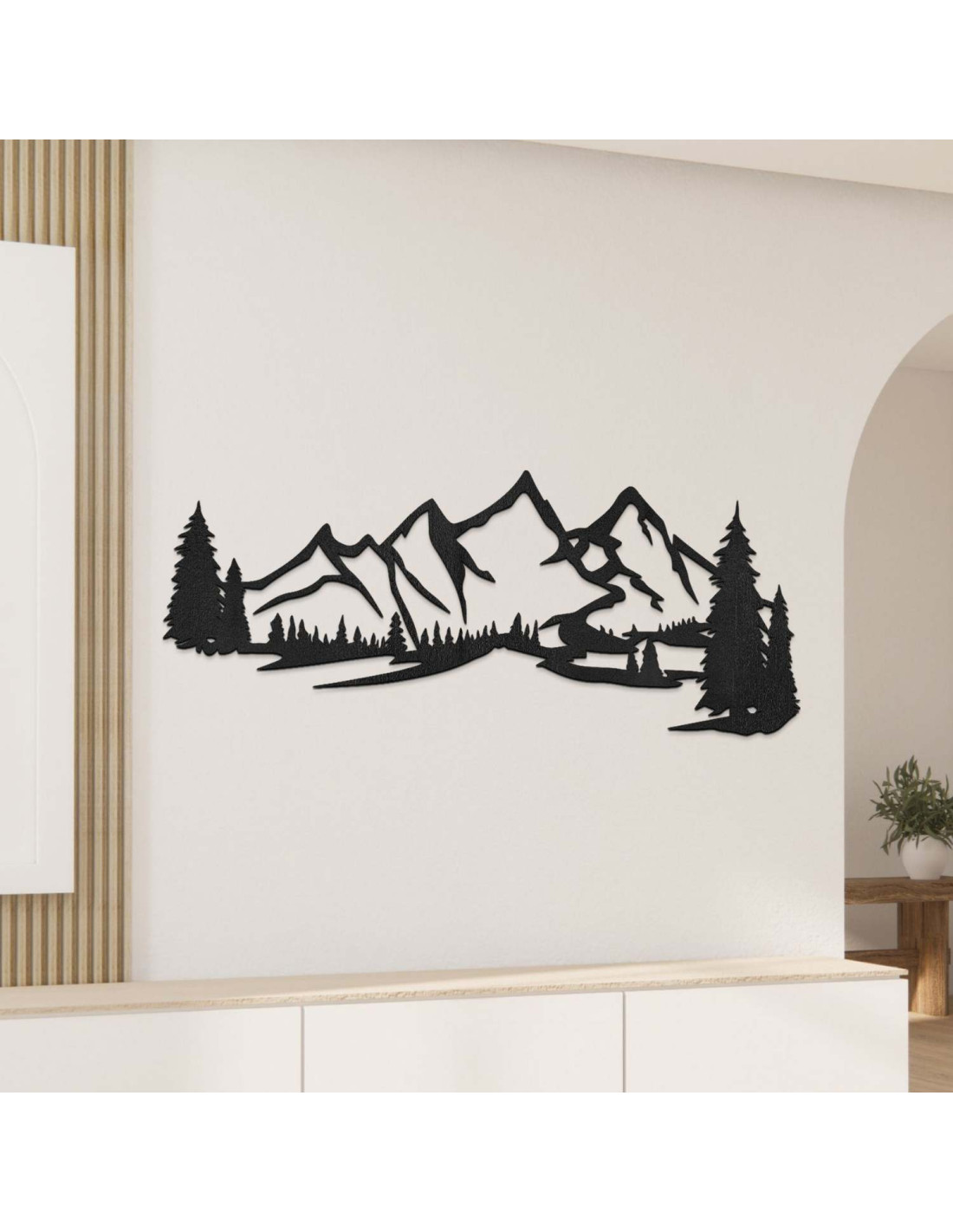 Kombinace horské krajiny, jehličnatých stromů a precizního laserového řezu vytváří výraznou estetickou dominantu, která krásně vynikne v obýváku, ložnici, pracovně i na chodbě.