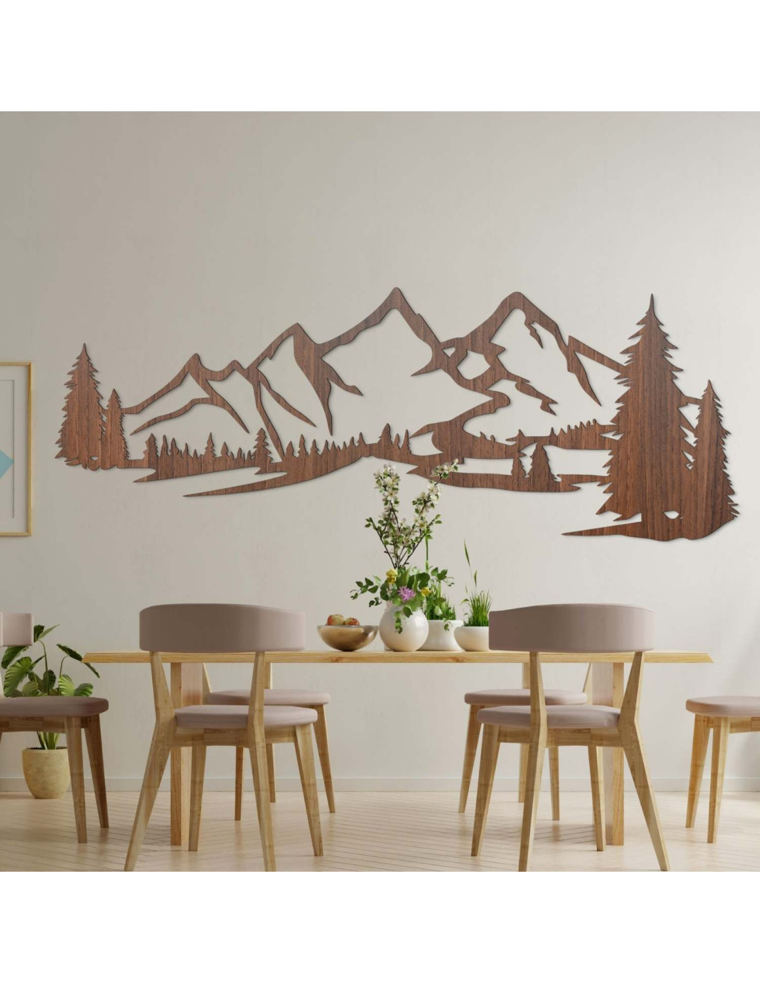 Moderní dřevěná dekorace Hory a les je ideálním doplňkem pro každého, kdo chce svůj interiér oživit nadčasovým přírodním designem.