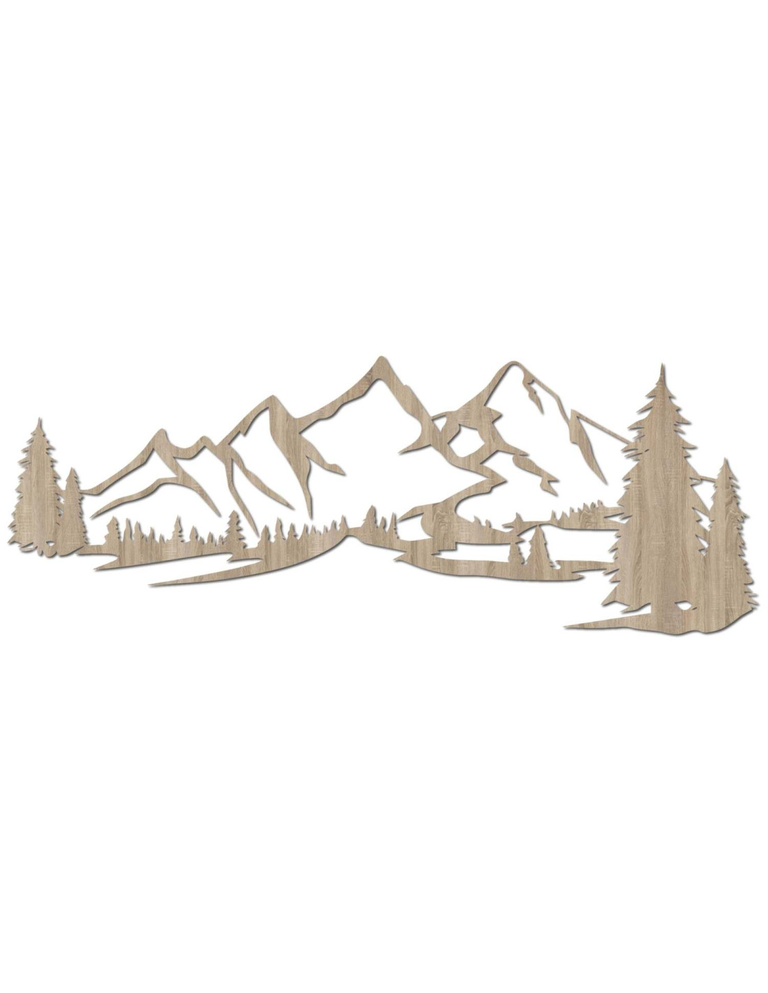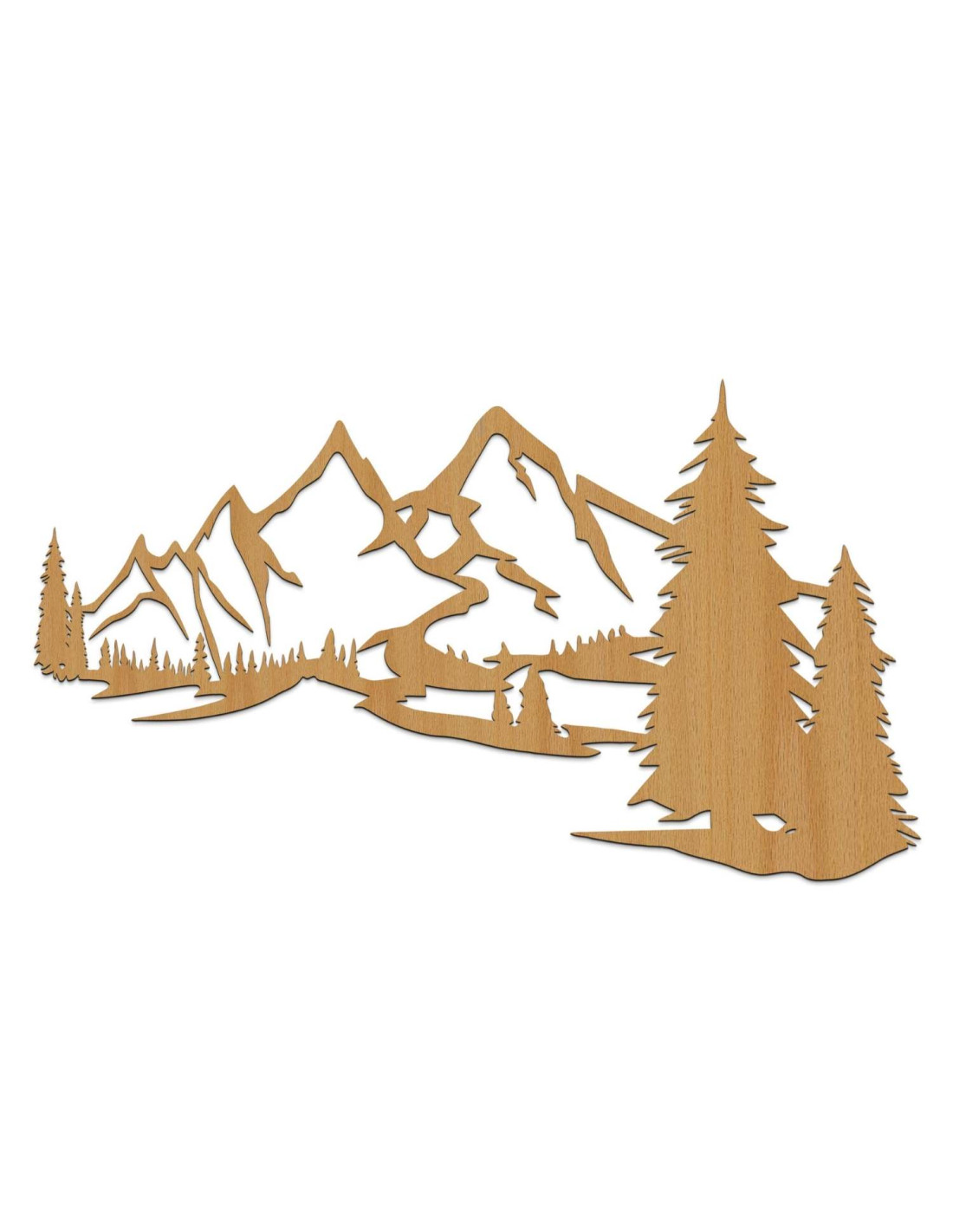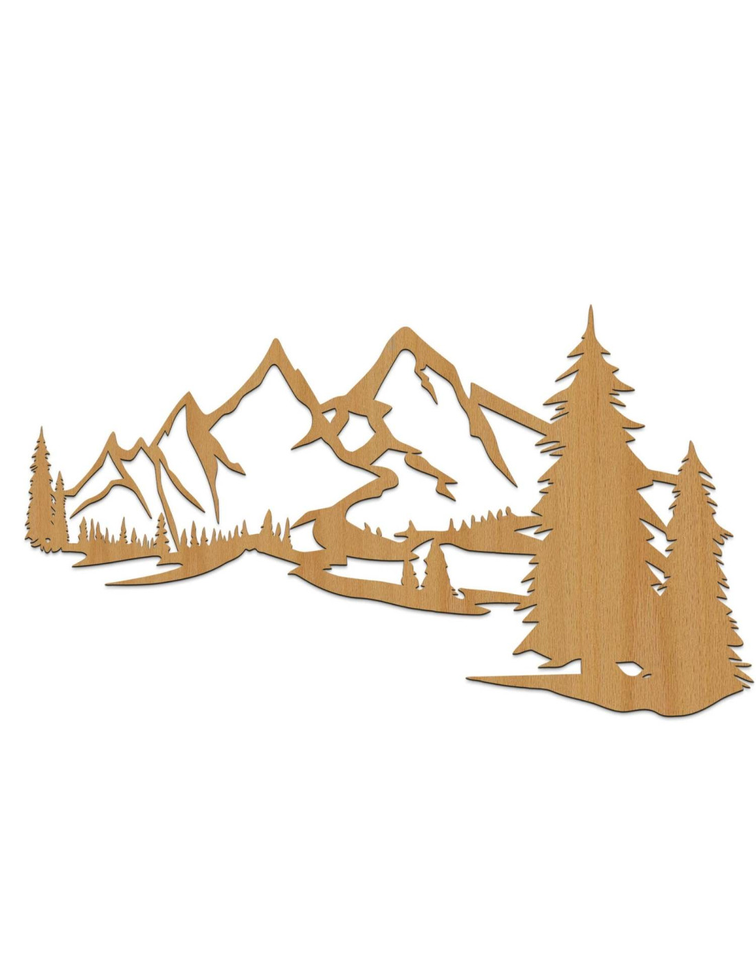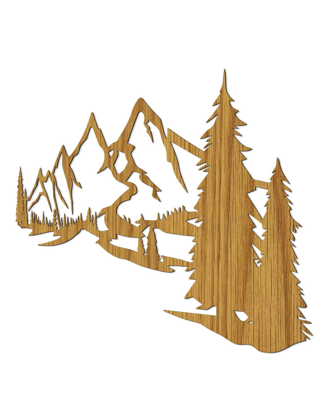 Scenérie majestátních hor a jehličnatých stromů je vyříznuta precizním laserovým řezem, který zajišťuje jemné detaily, čisté linie a profesionální kvalitu zpracování.