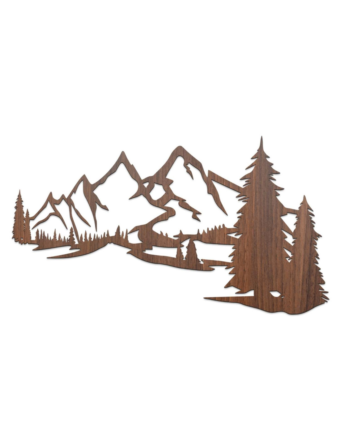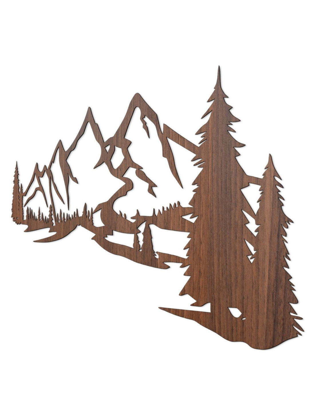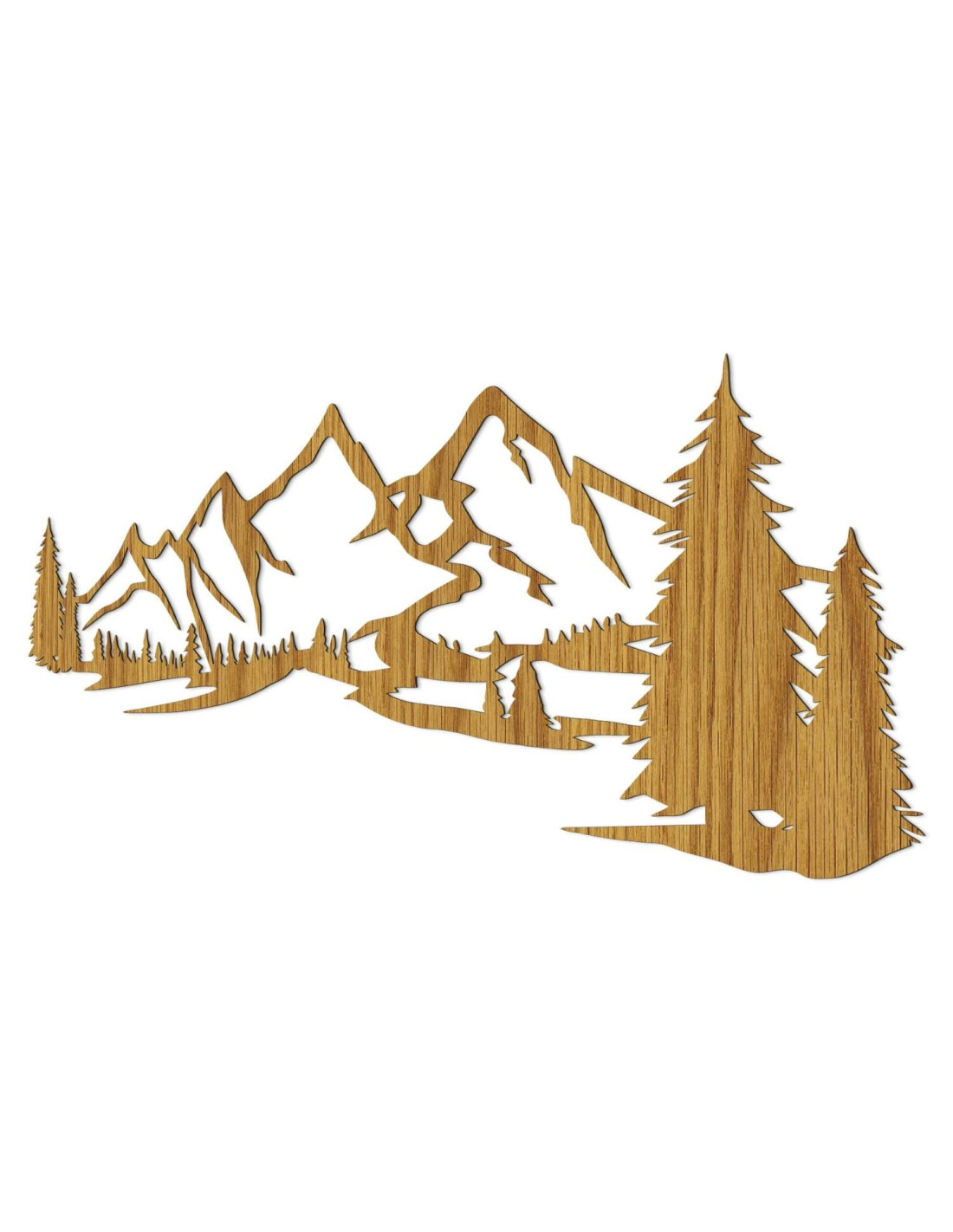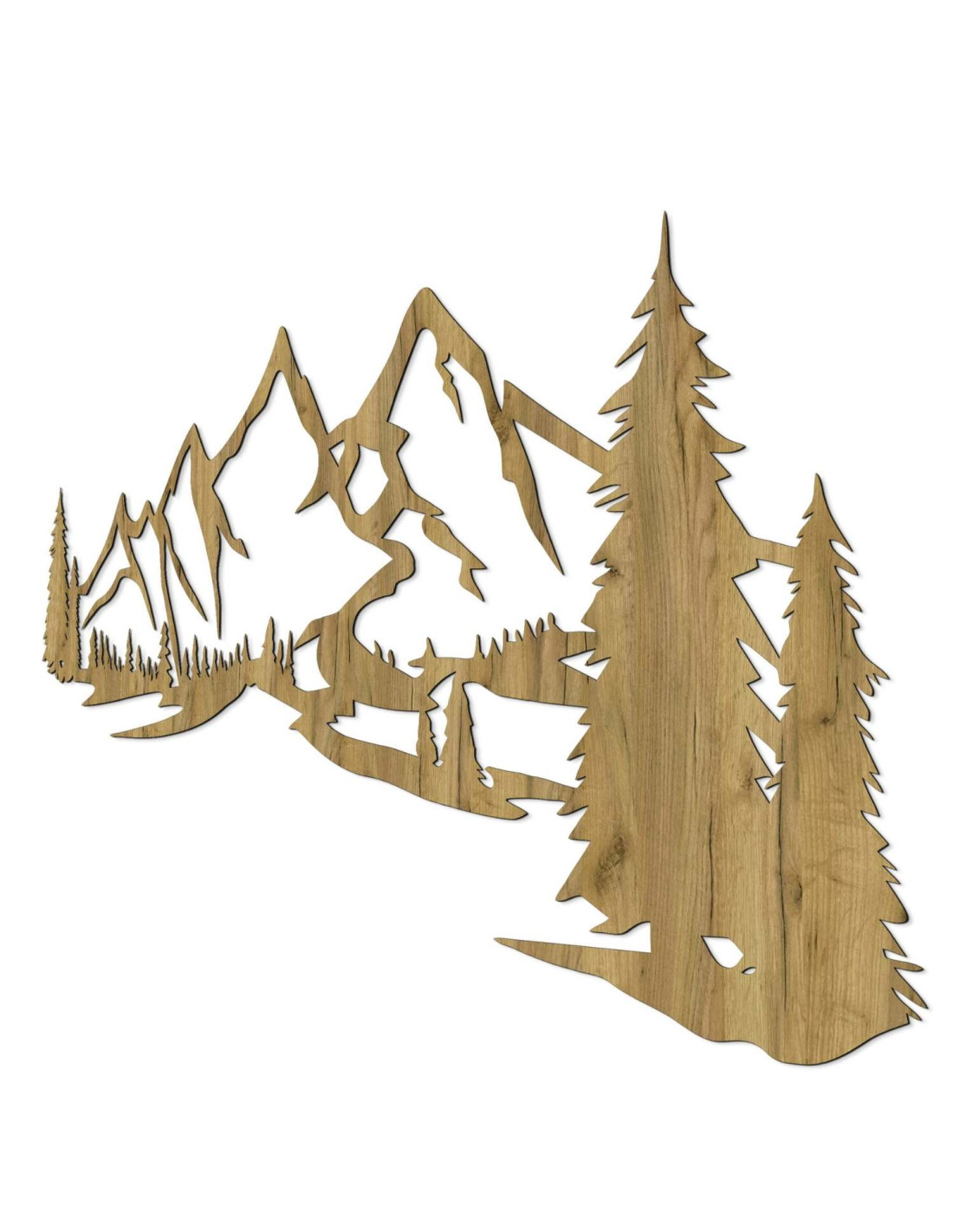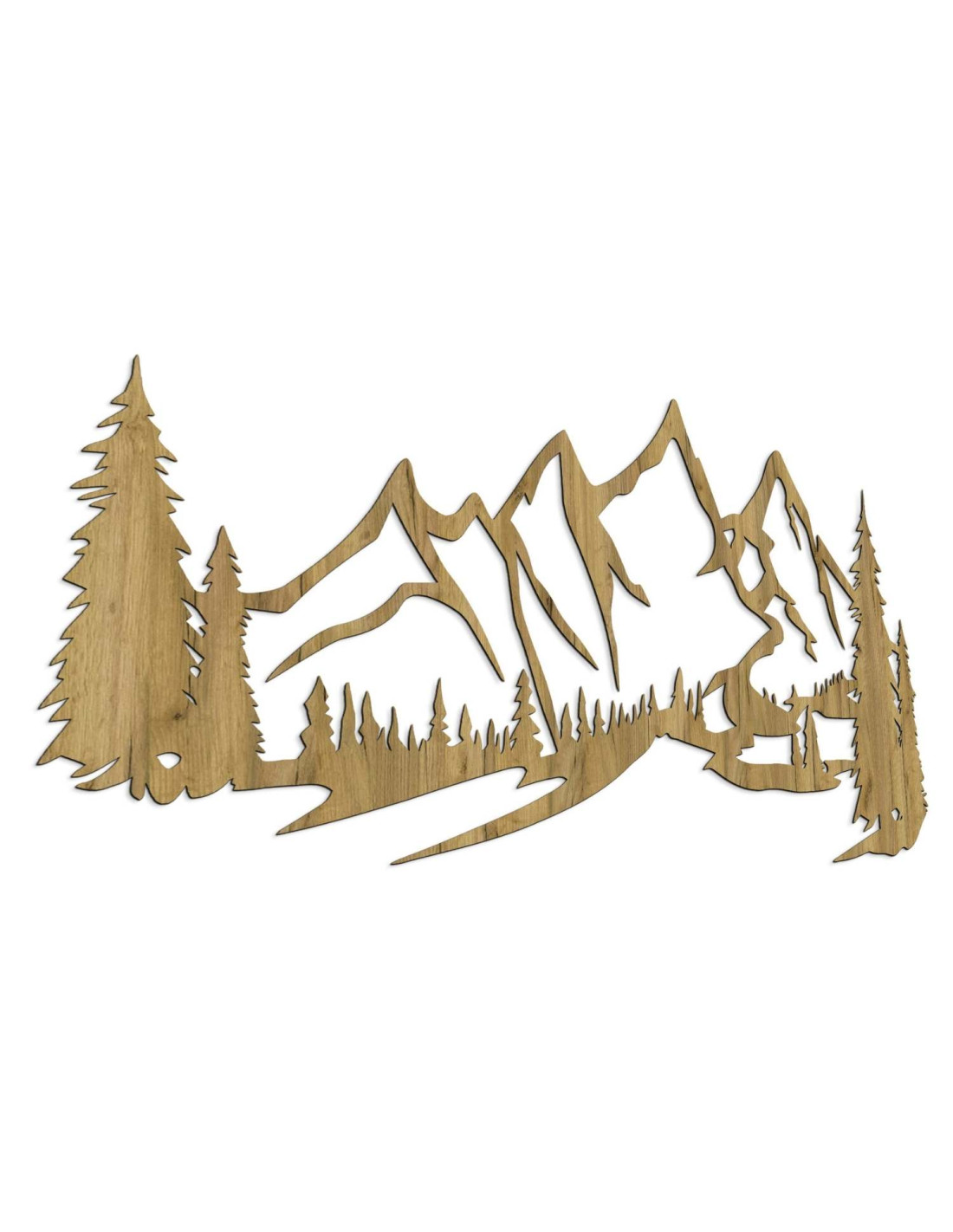 Scenérie majestátních hor a jehličnatých stromů je vyříznuta precizním laserovým řezem, který zajišťuje jemné detaily, čisté linie a profesionální kvalitu zpracování.