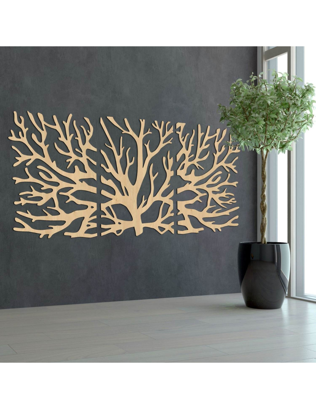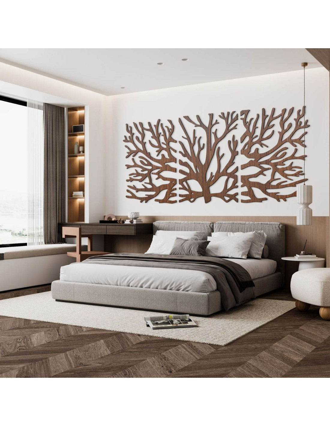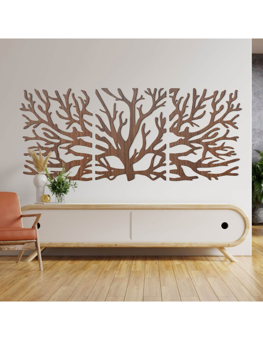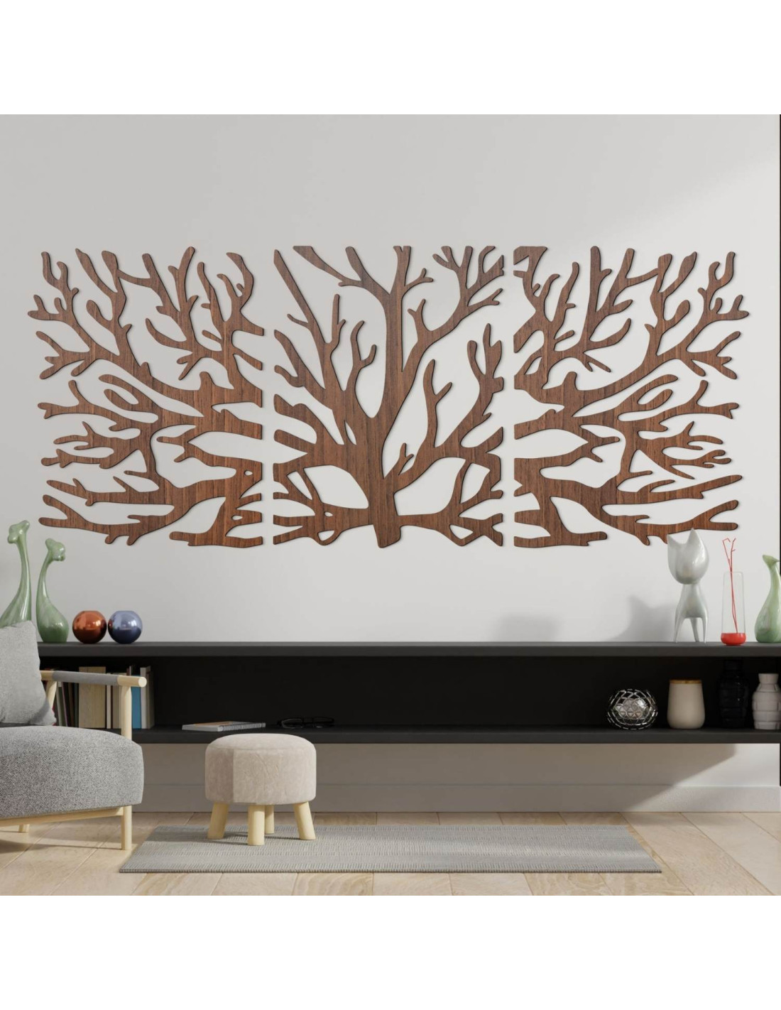 Objevte trojdílný dřevěný obraz s motivem stromu života – harmonické spojení moderního designu , přírodní symboliky a umělecké elegance , které dodá vašemu interiéru jedinečný charakter.