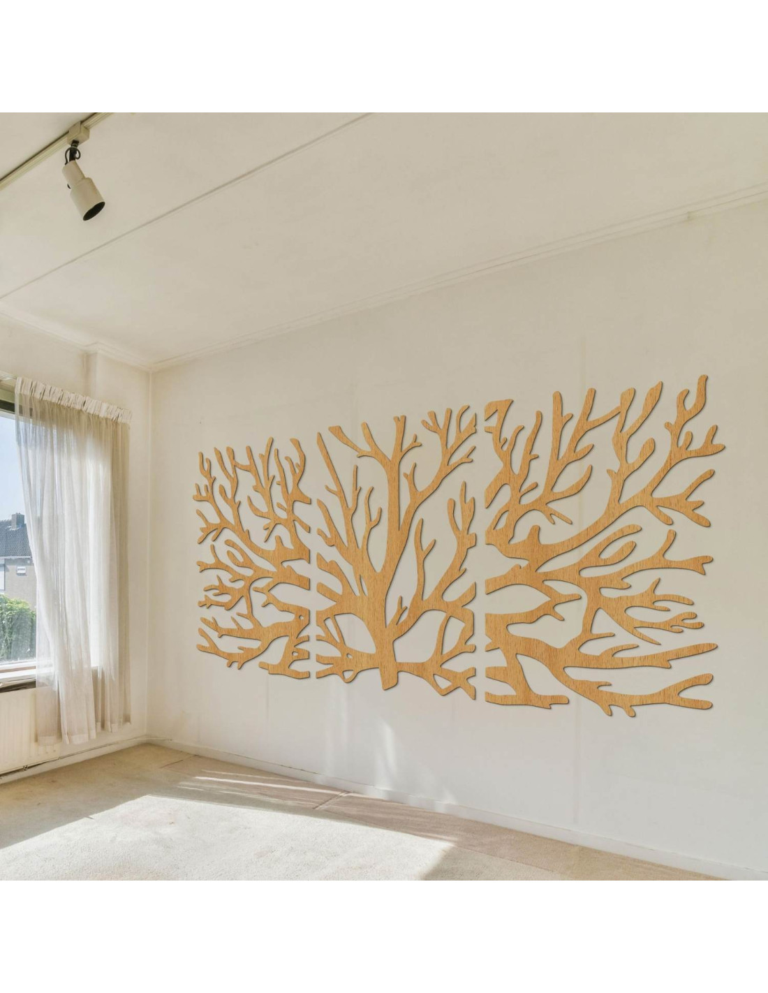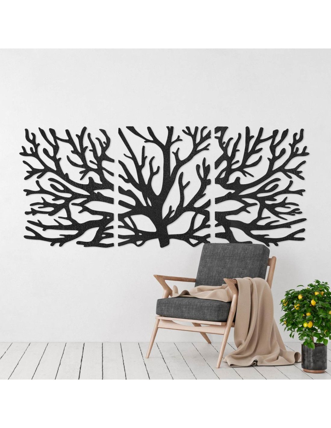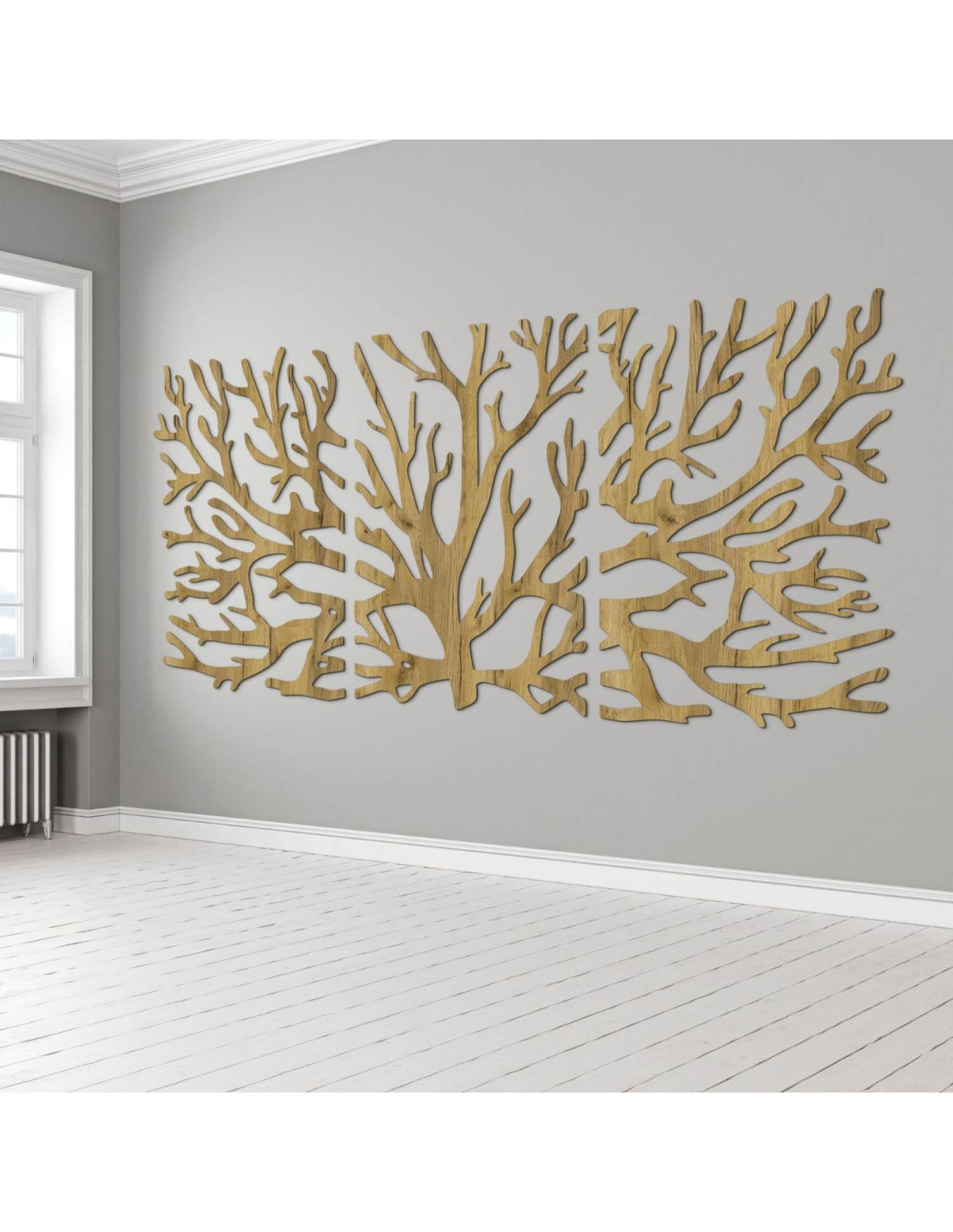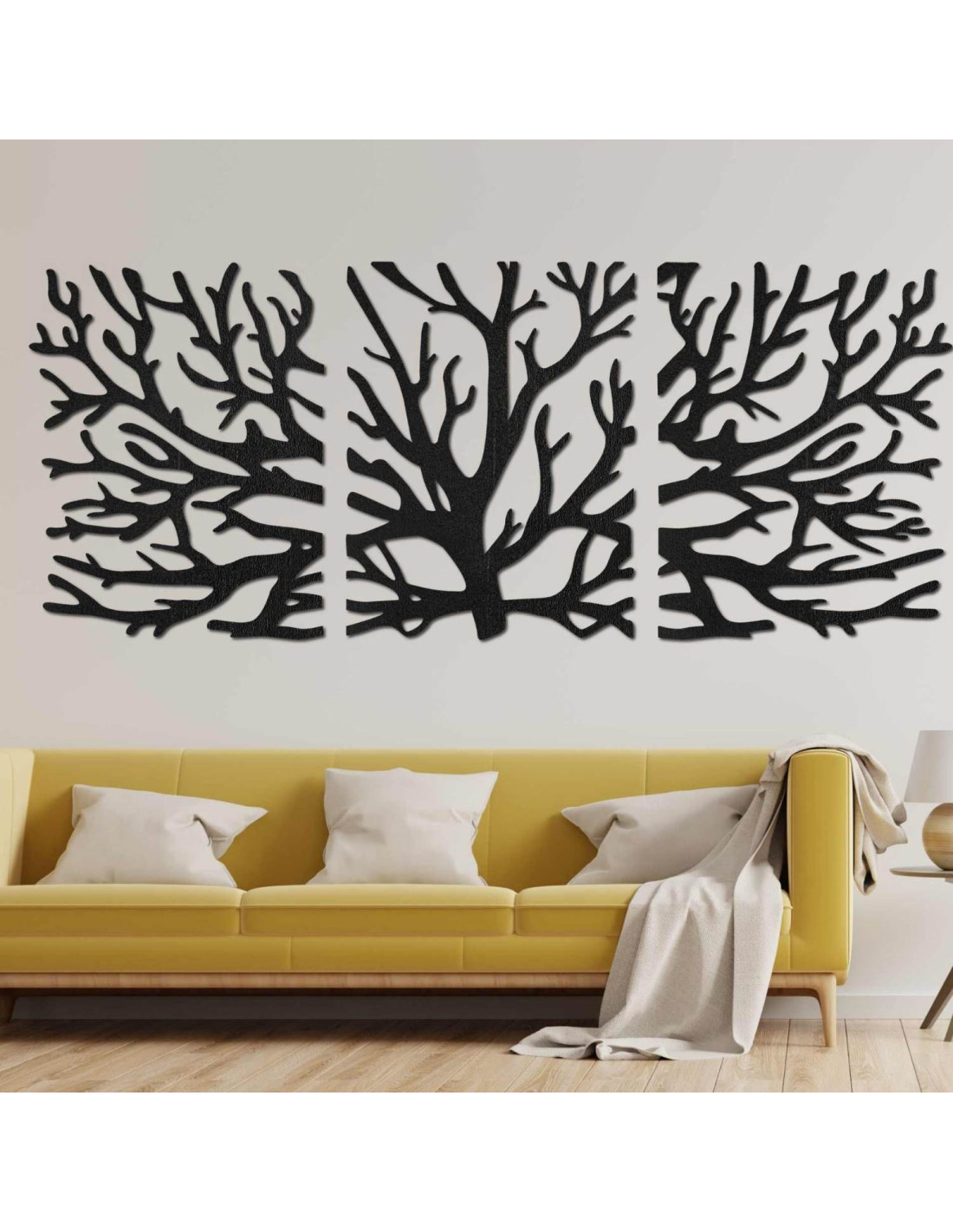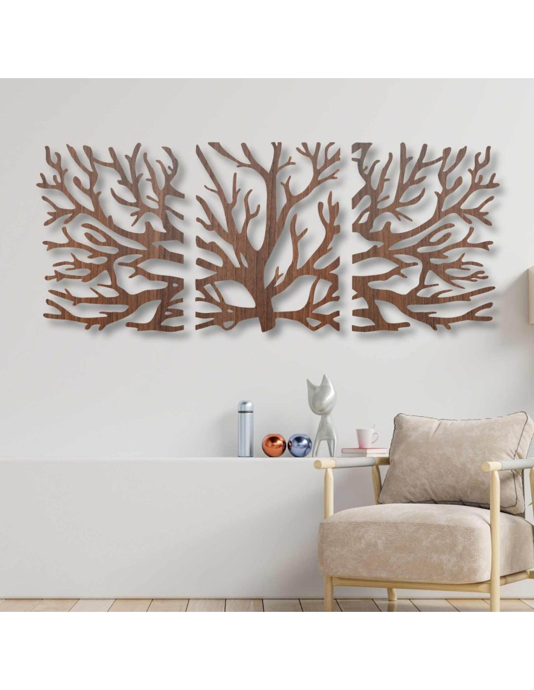 Objevte trojdílný dřevěný obraz s motivem stromu života – harmonické spojení moderního designu , přírodní symboliky a umělecké elegance , které dodá vašemu interiéru jedinečný charakter.