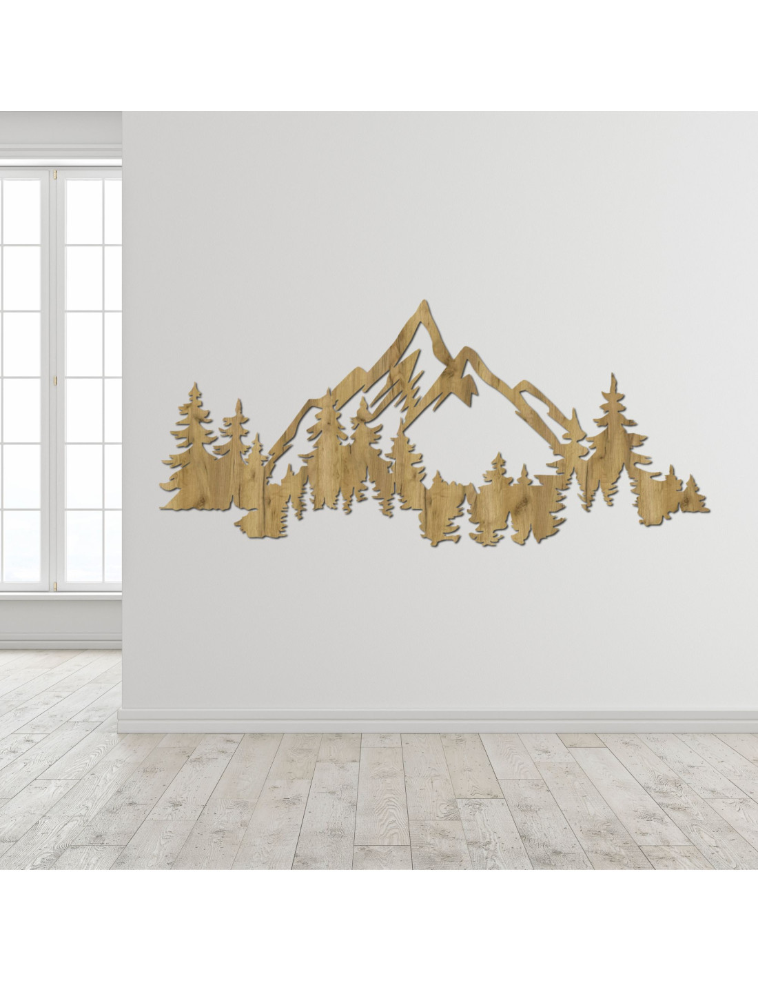 Nástěnná dřevěný obraz horské krajiny s lesem | SIERRAA