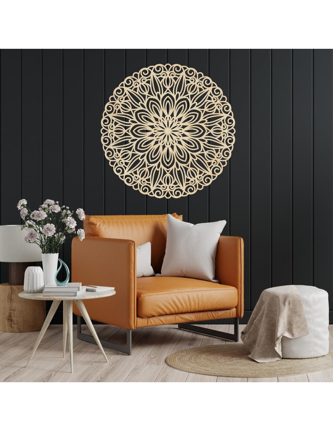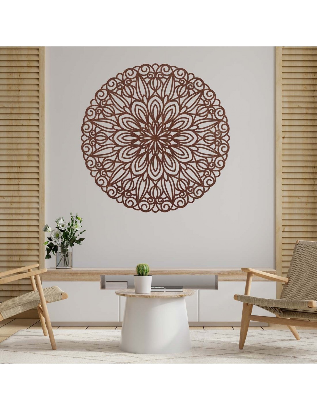 Dřevěná mandala dodává každému prostoru harmonii, eleganci a umělecký půvab .
