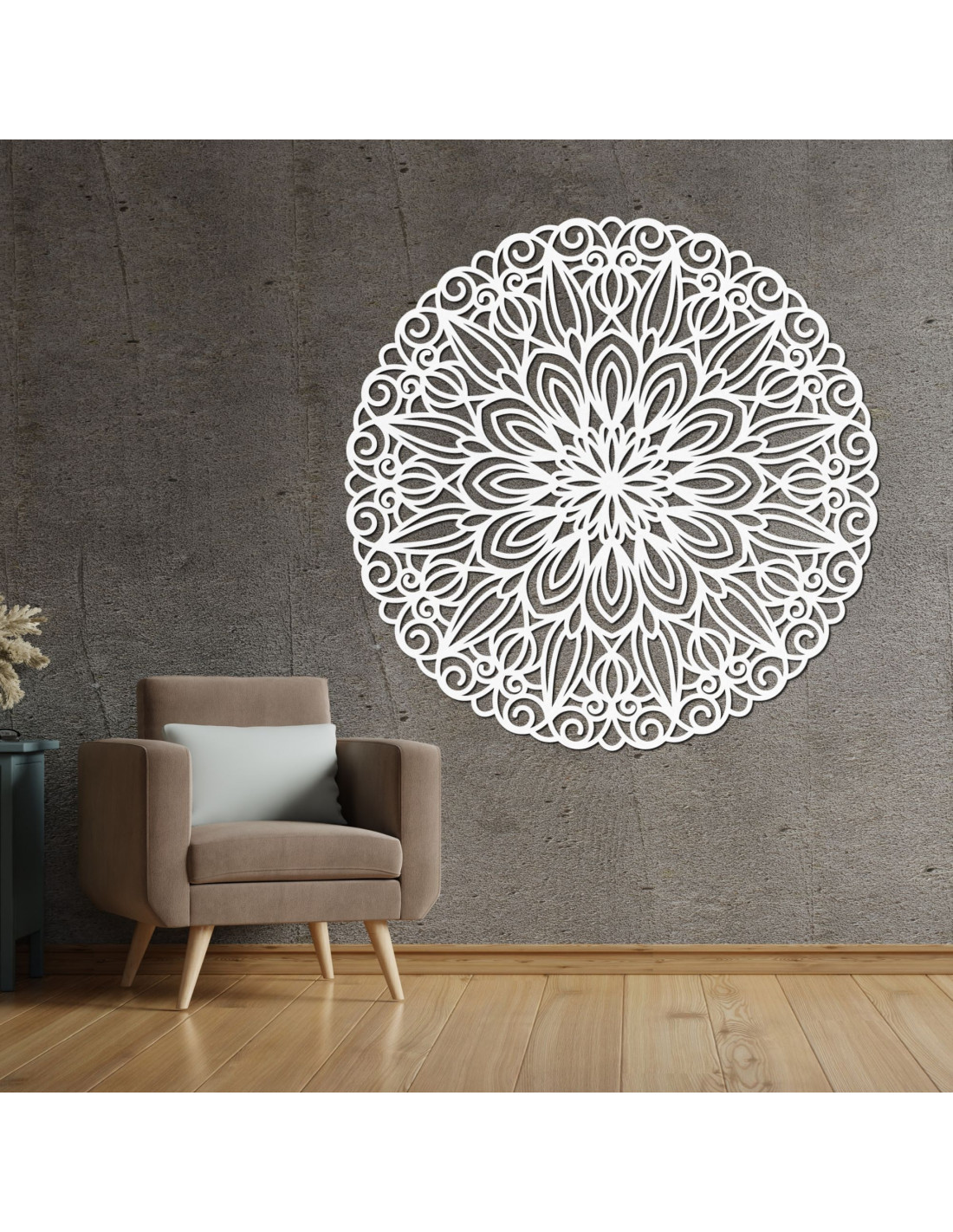 Tato dřevěná mandala je elegantním designovým prvkem, který přemění každý interiér na místo klidu a harmonie.