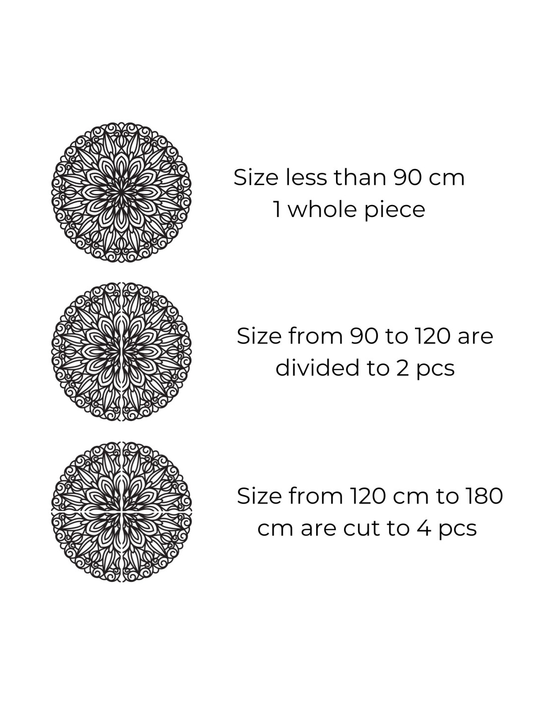- Od 140 cm do 180 cm – rozdělena na čtyři části (nebo více) pro zachování přesné geometrie vzoru.