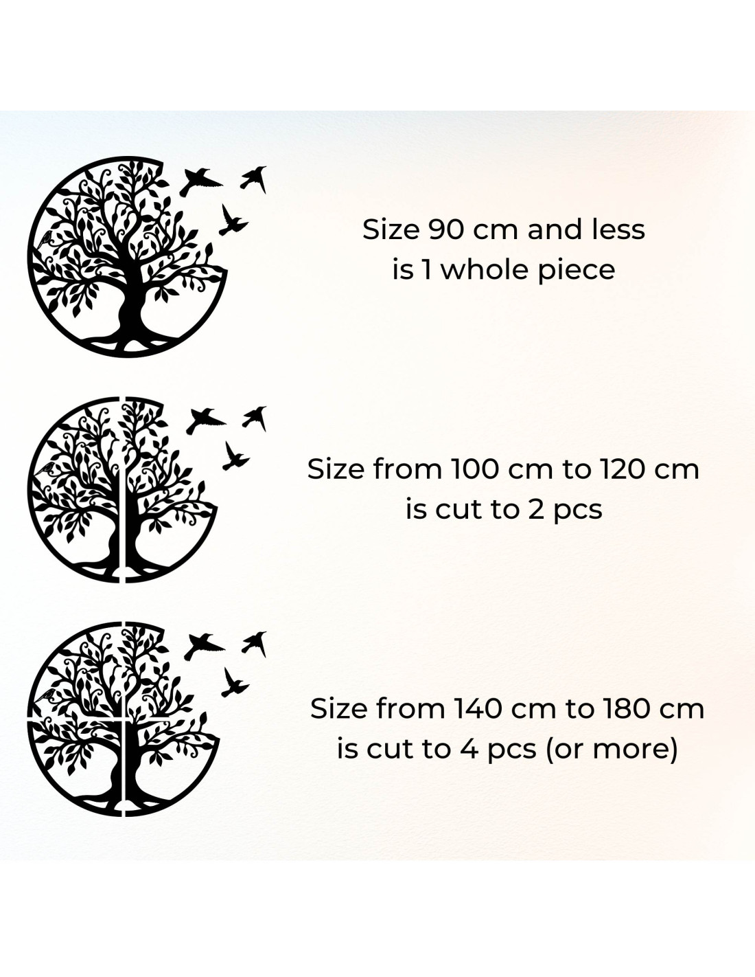 - Od 100 cm do 120 cm - dekorace je rozříznuta na dvě části