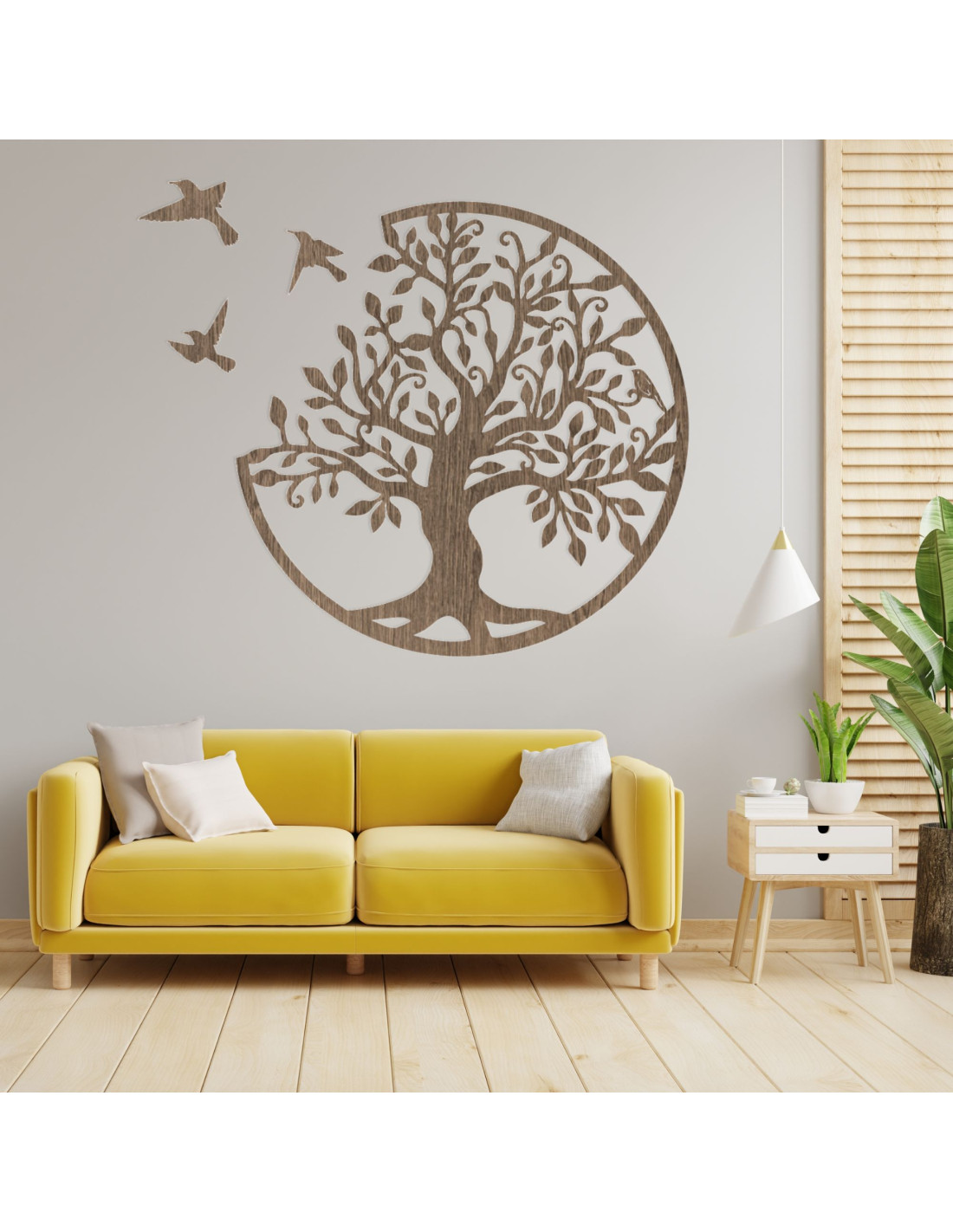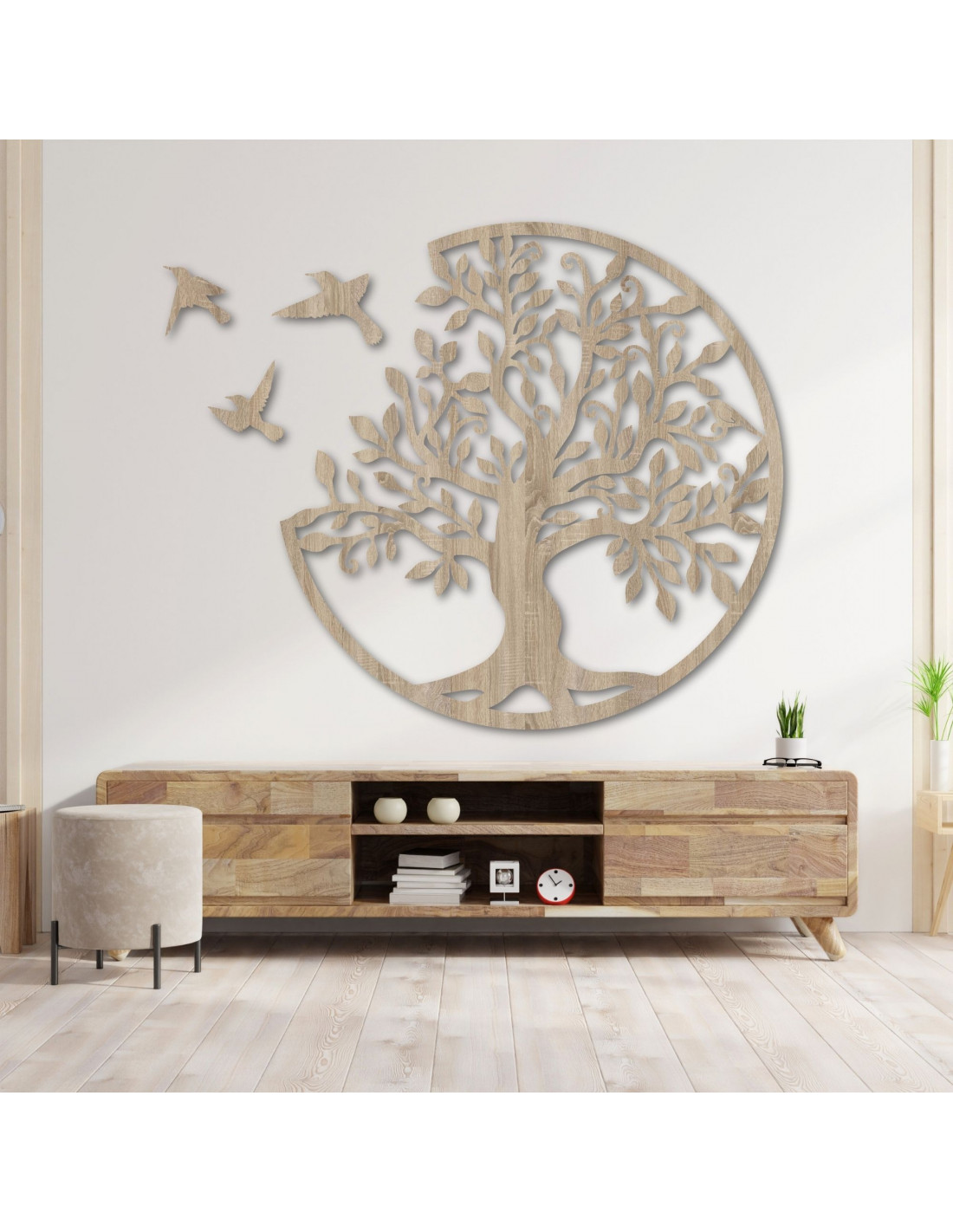 Dřevěný Strom života s ptáky - přírodní nástěnná dekorace | GORCHLO