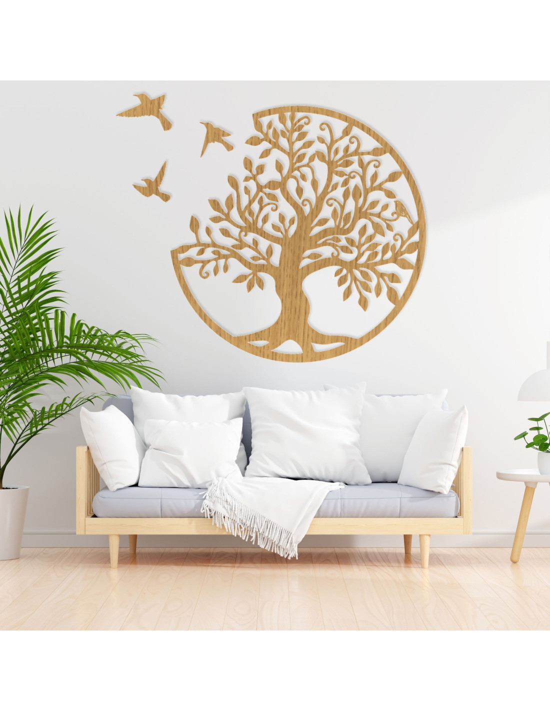 Dřevěný Strom života s ptáky - přírodní nástěnná dekorace | GORCHLO