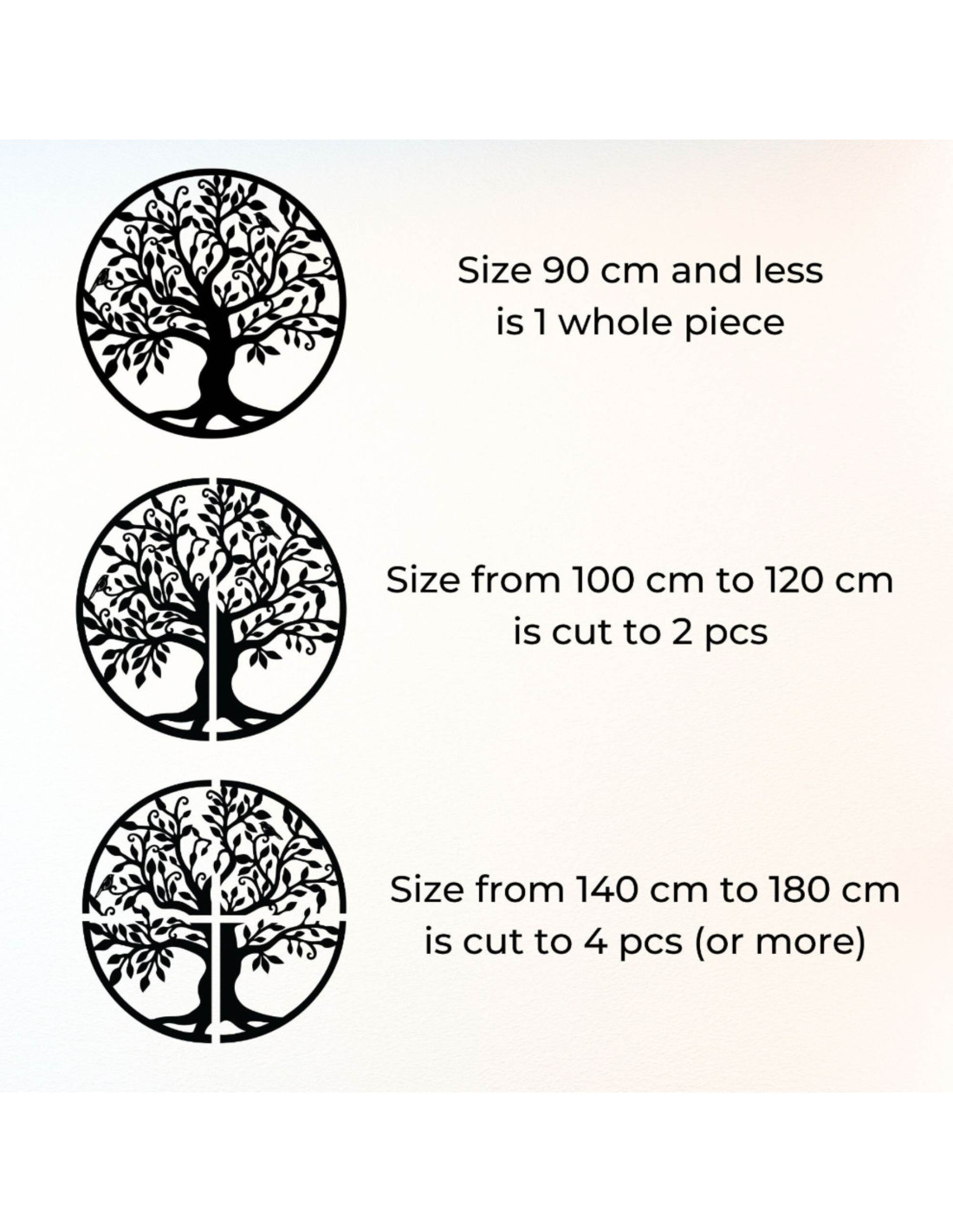 - Od 140 cm do 180 cm - dekorace je rozříznuta na čtyři části