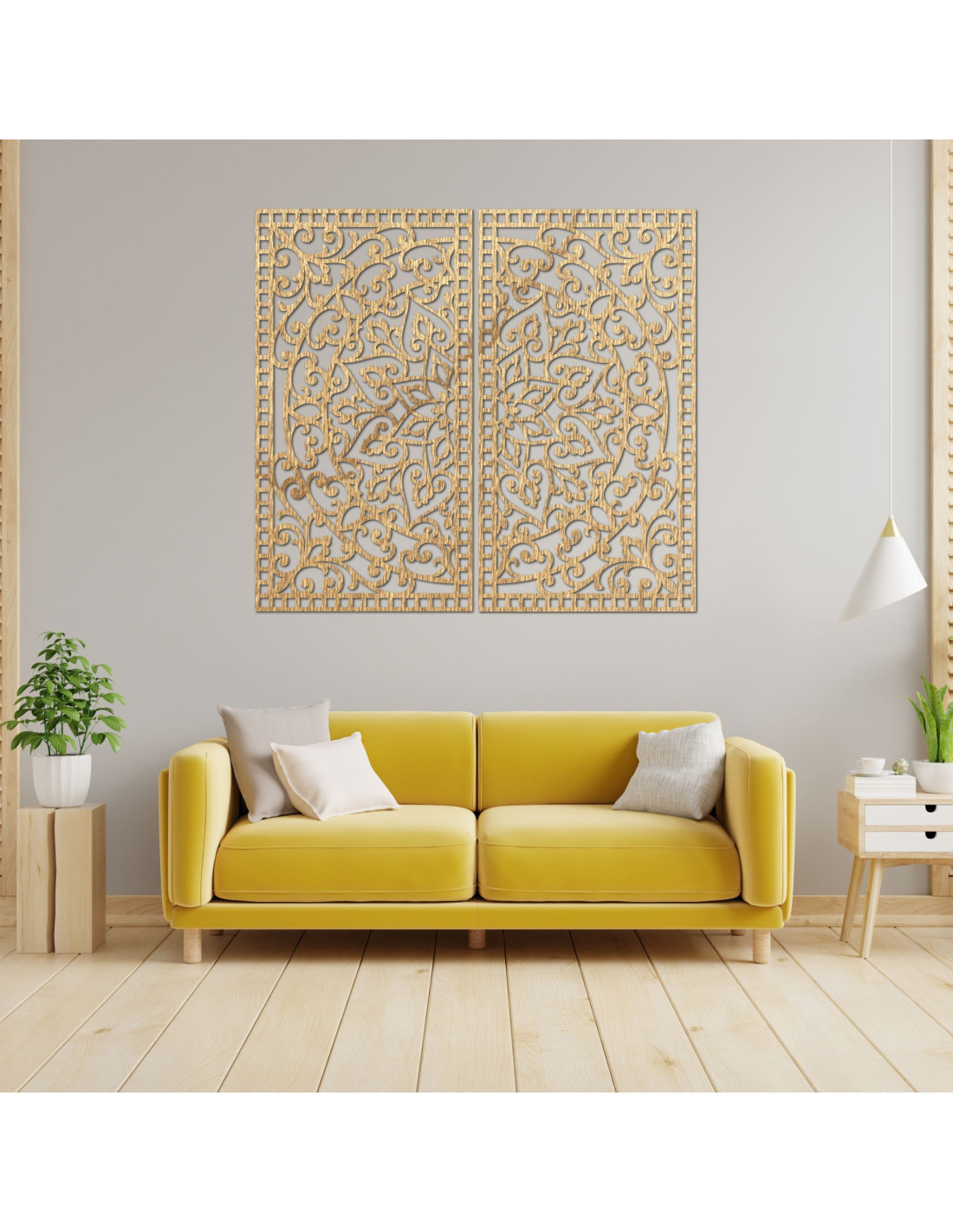Dřevěný 2-dílný obraz Mandala – Vyřezávaná nástěnná dekorace - FLOUFER