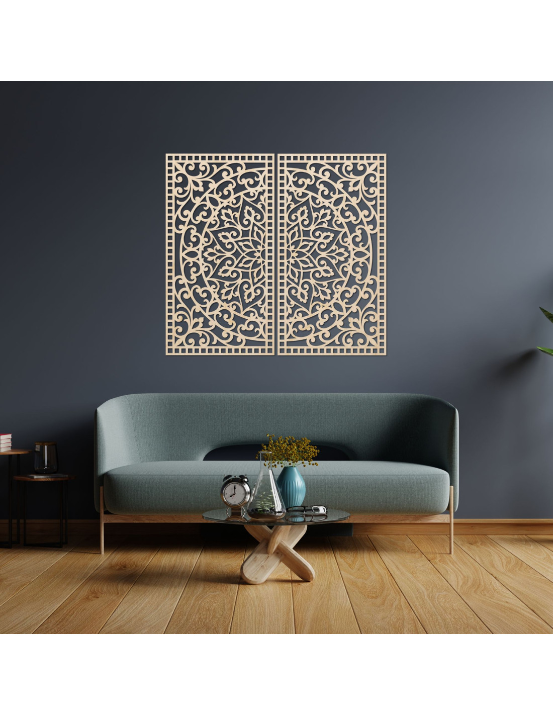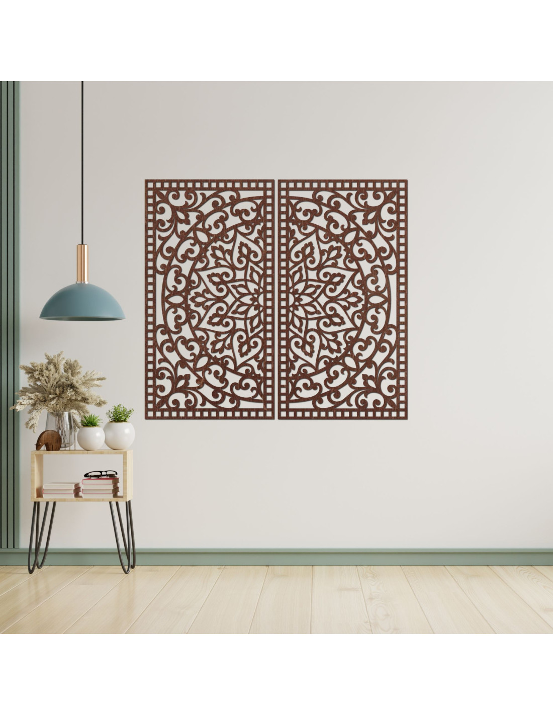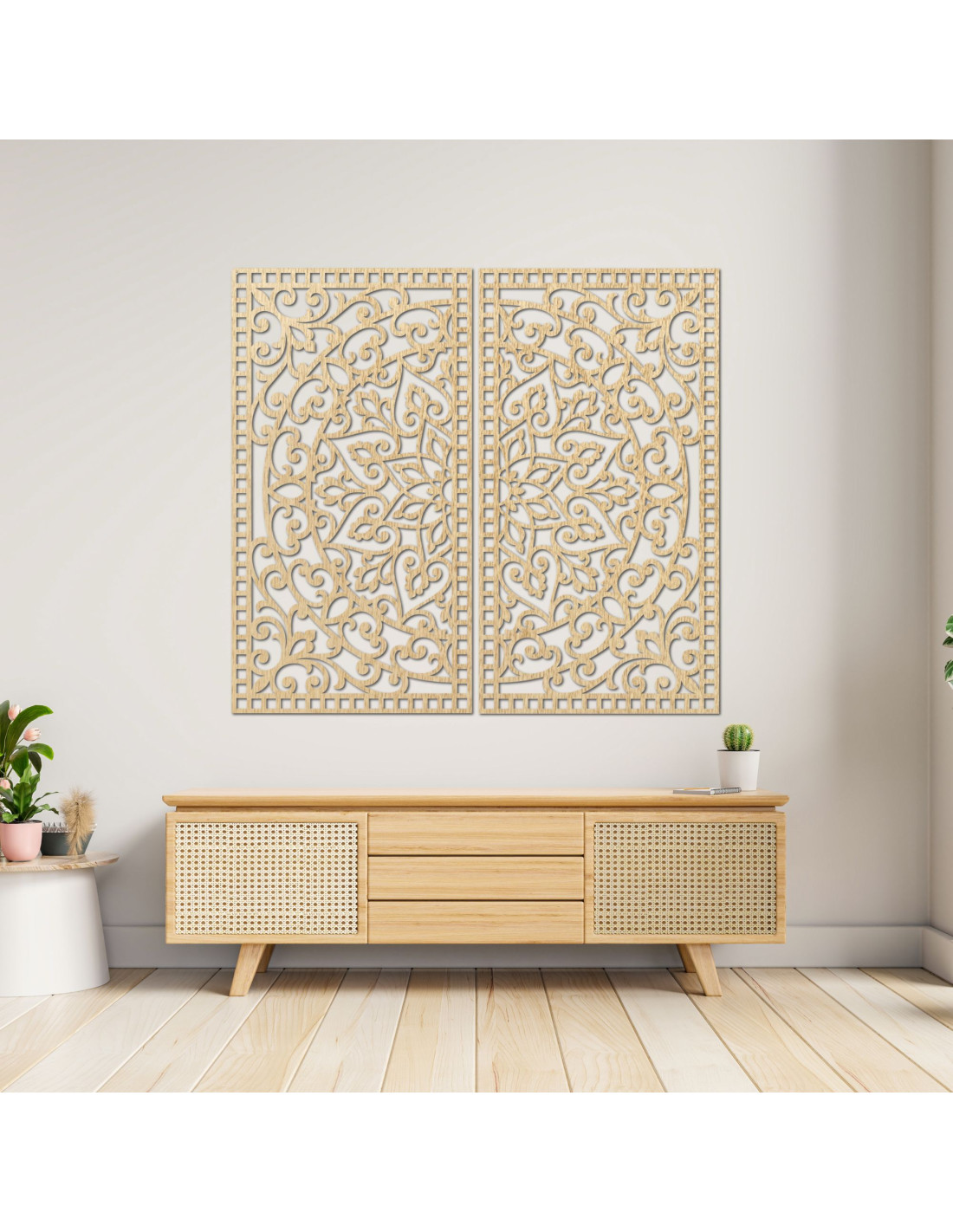 Dřevěný 2-dílný obraz Mandala – Vyřezávaná nástěnná dekorace - FLOUFER