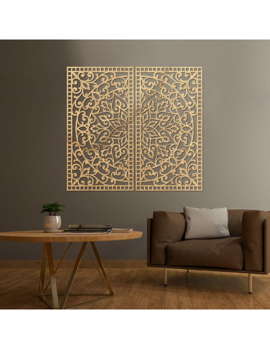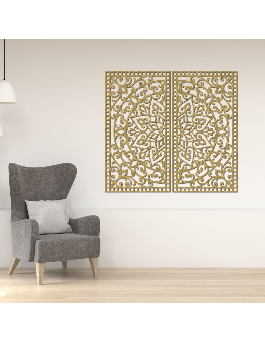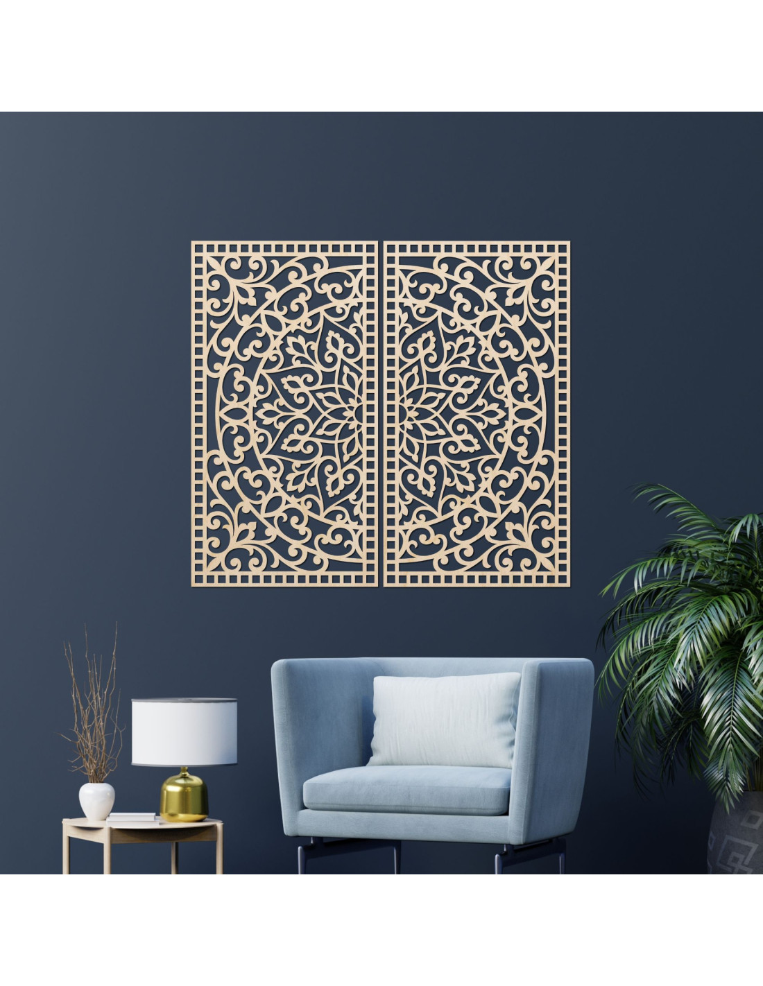 Dřevěný 2-dílný obraz Mandala – Vyřezávaná nástěnná dekorace - FLOUFER