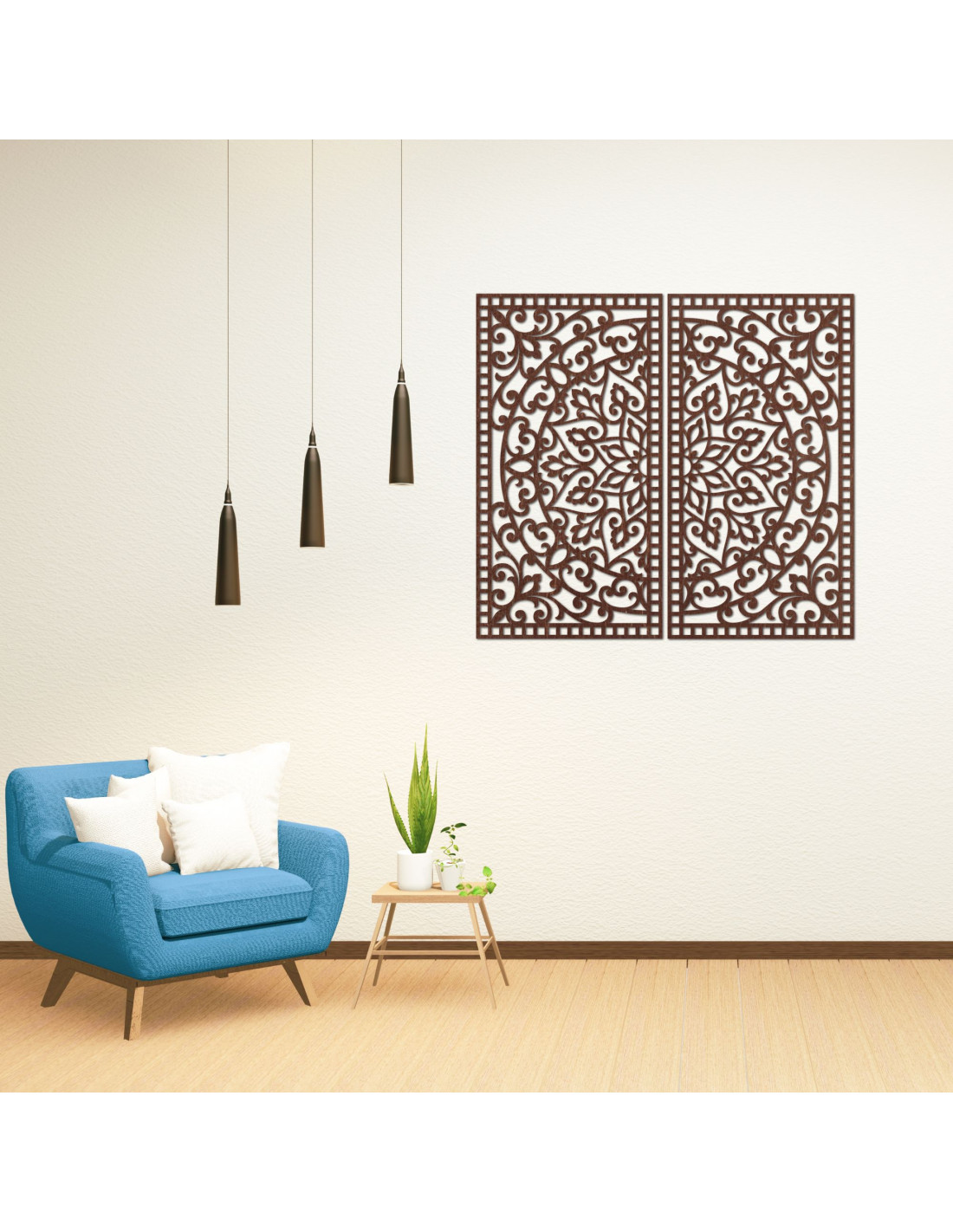 Dřevěný 2-dílný obraz Mandala – Vyřezávaná nástěnná dekorace - FLOUFER