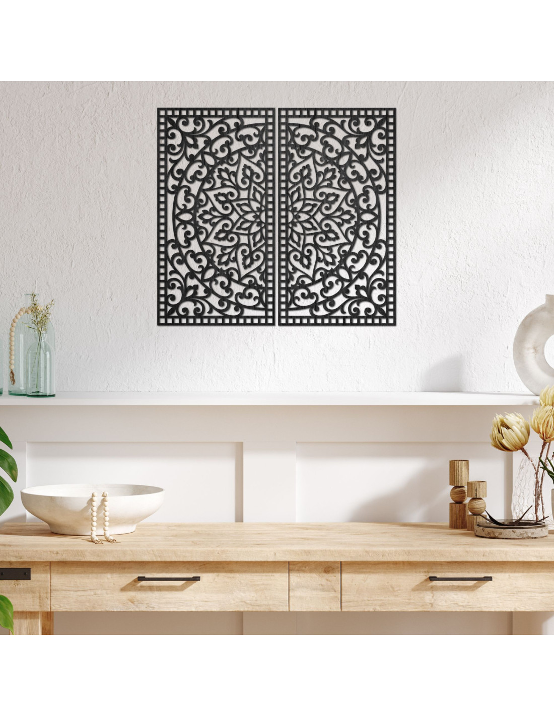 Dřevěný 2-dílný obraz Mandala – Vyřezávaná nástěnná dekorace - FLOUFER