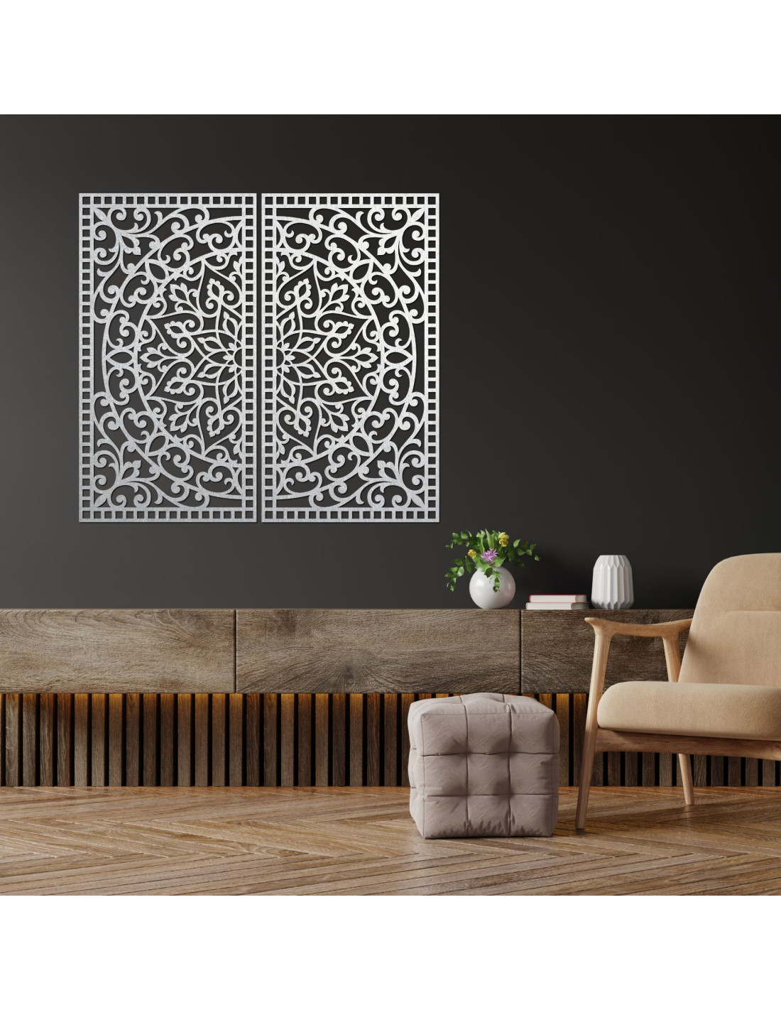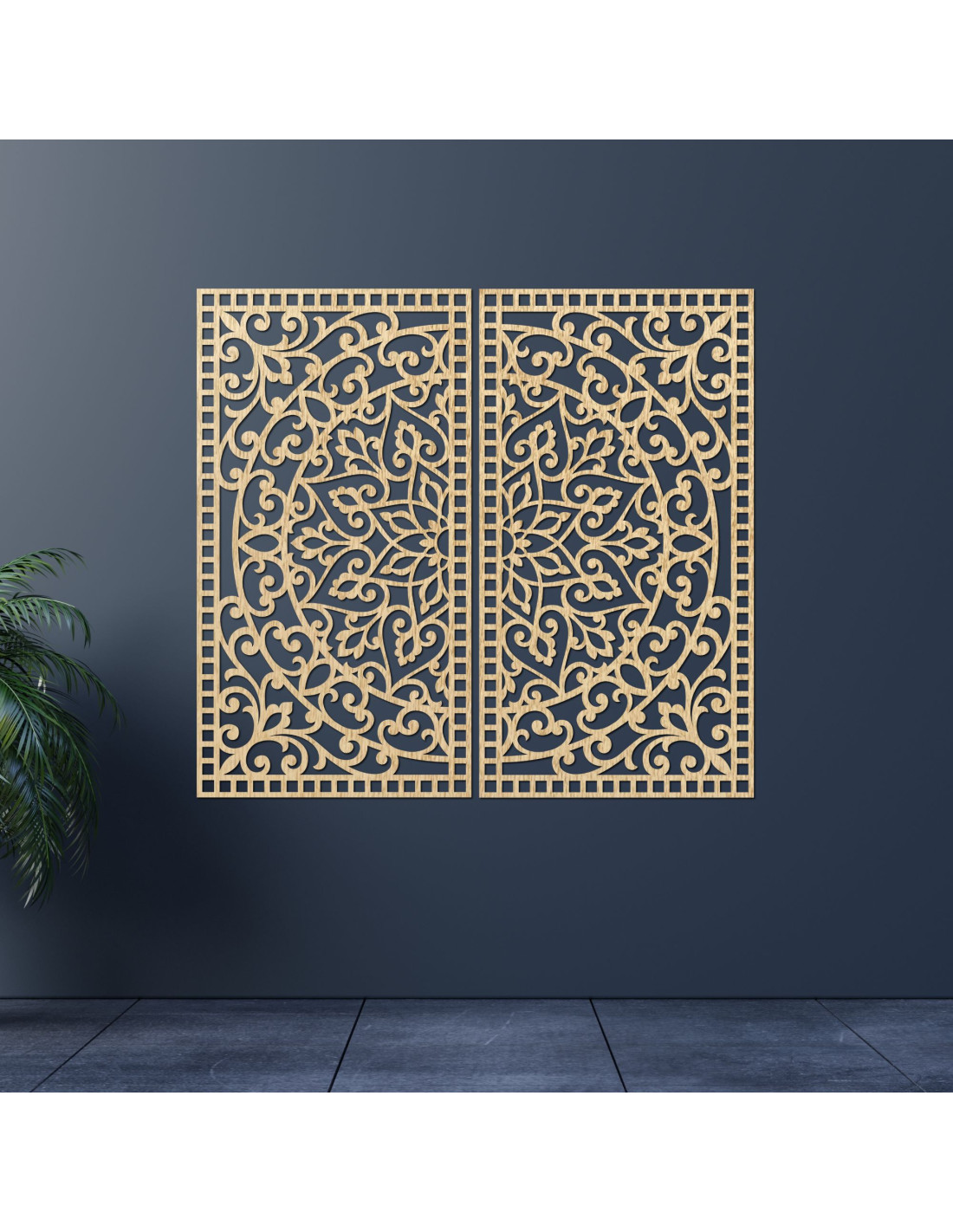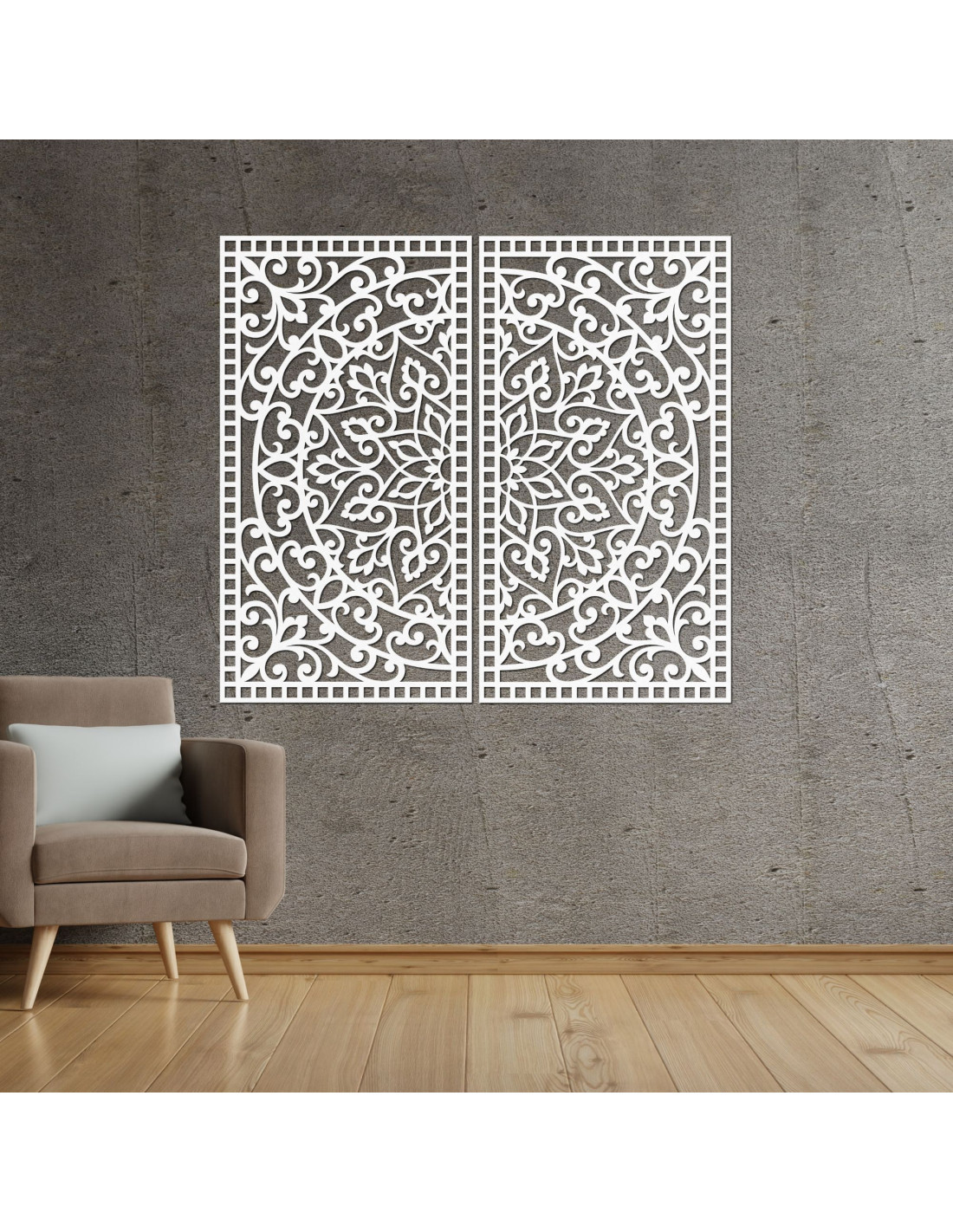 Dřevěný 2-dílný obraz Mandala – Vyřezávaná nástěnná dekorace - FLOUFER