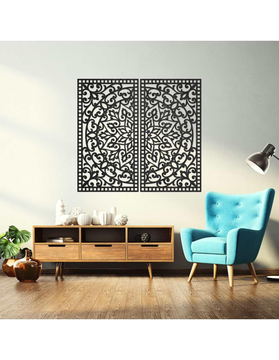 Dřevěný 2-dílný obraz Mandala – Vyřezávaná nástěnná dekorace