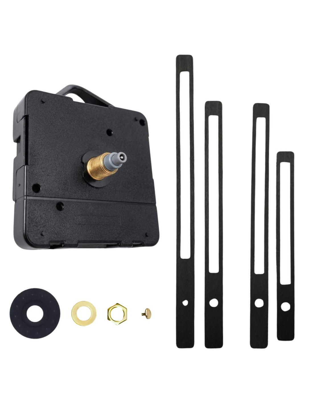 - Obsah sady: gumová podložka, kovová podložka, středová matice, zaslepovací matice, QUARTZ strojek, hodinová a minutová ručička