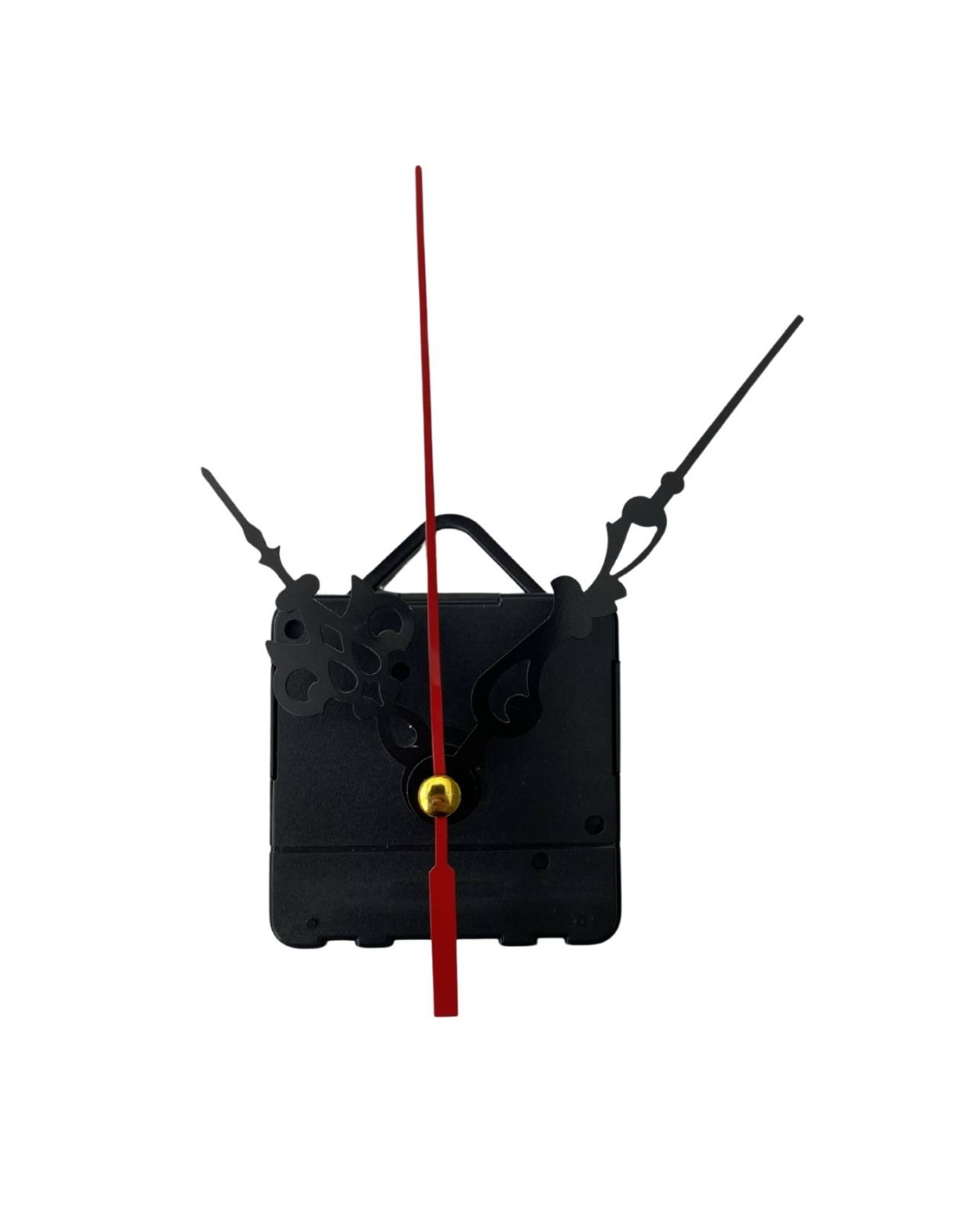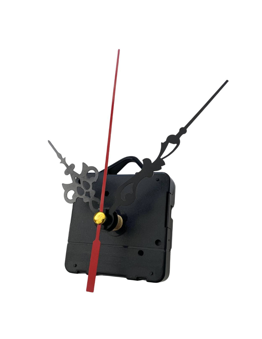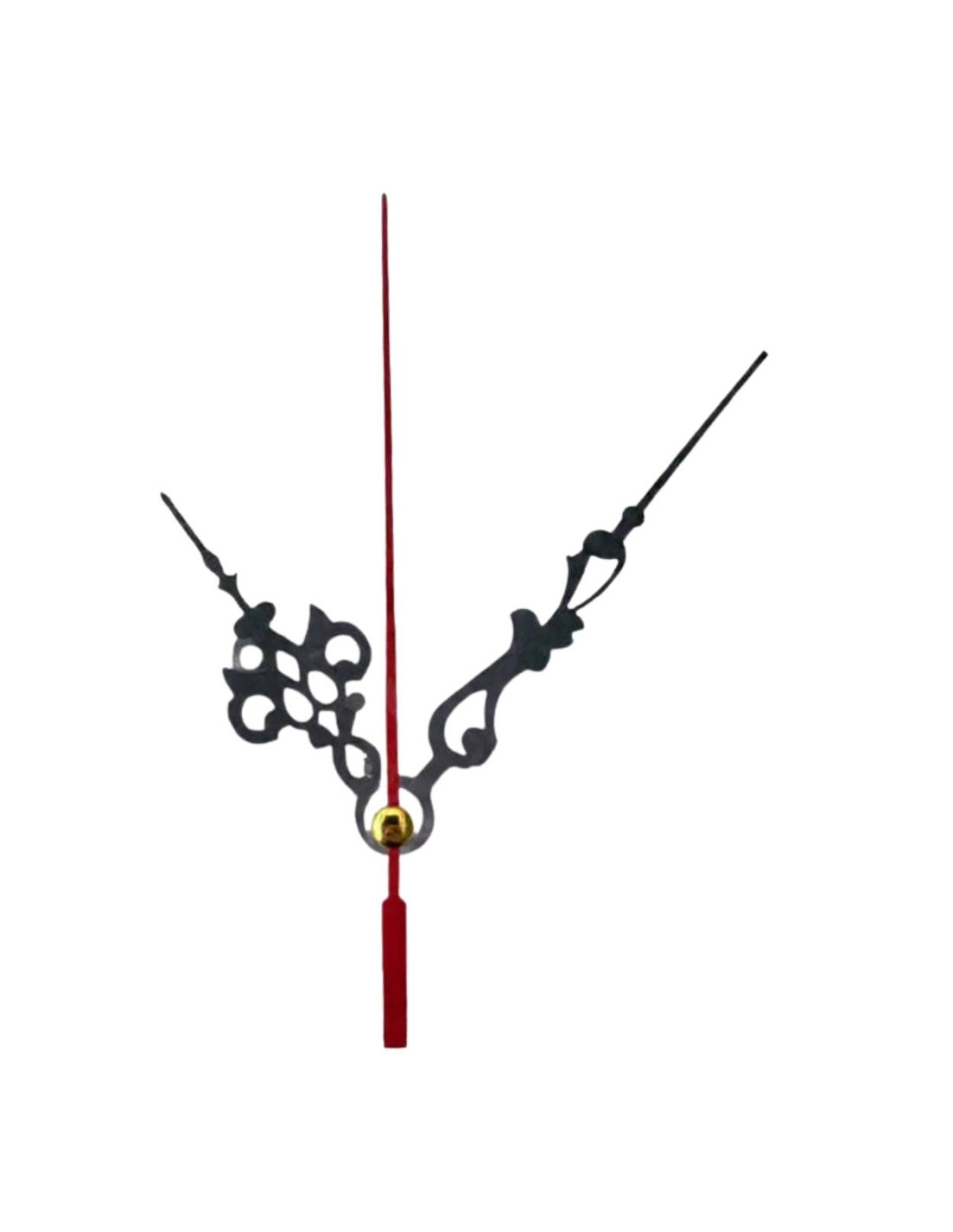 Hliníkové ručičky na nástěnné hodiny v černé barvě s červenou vteřinovou ručičkou.