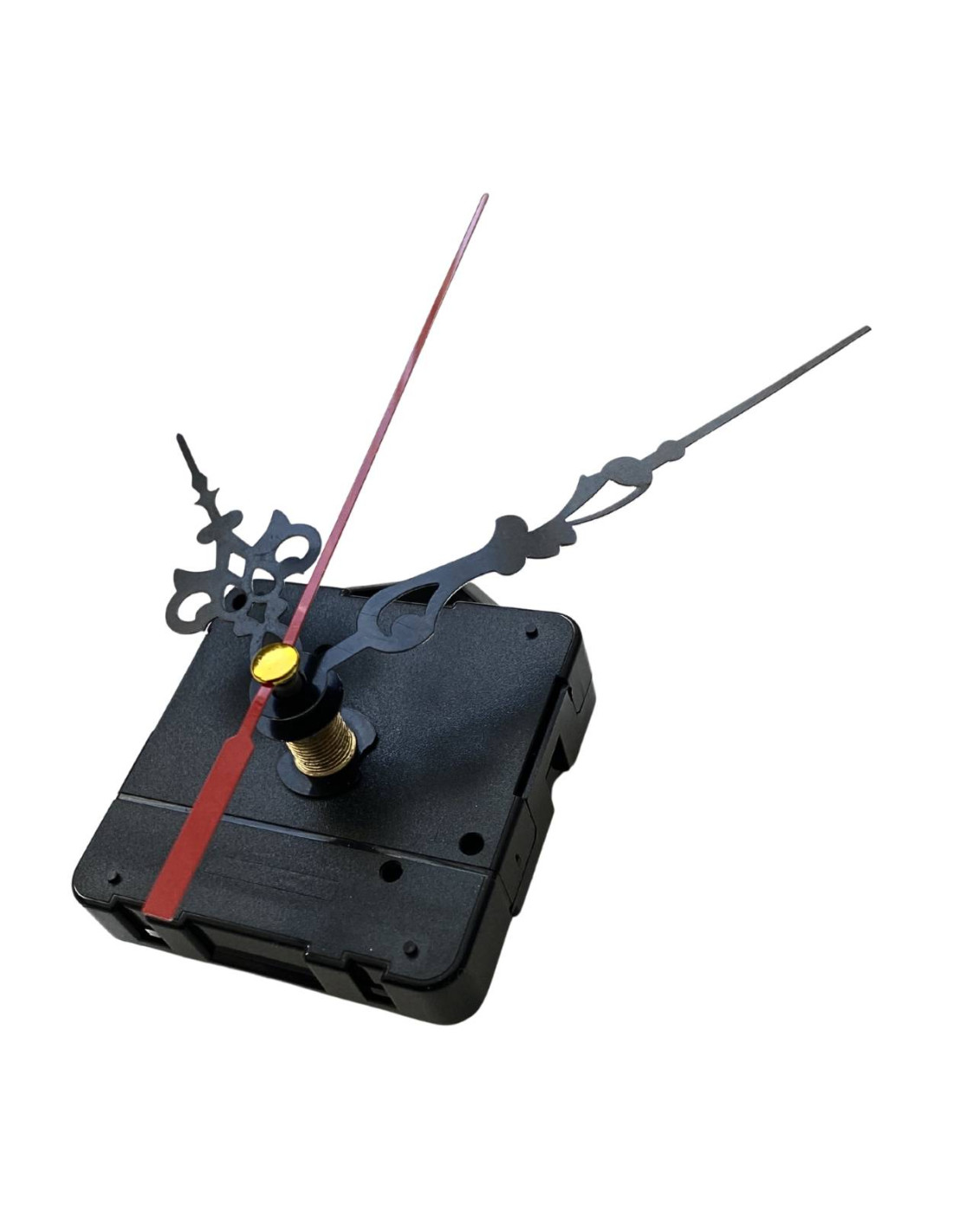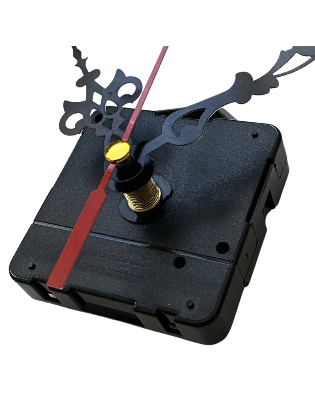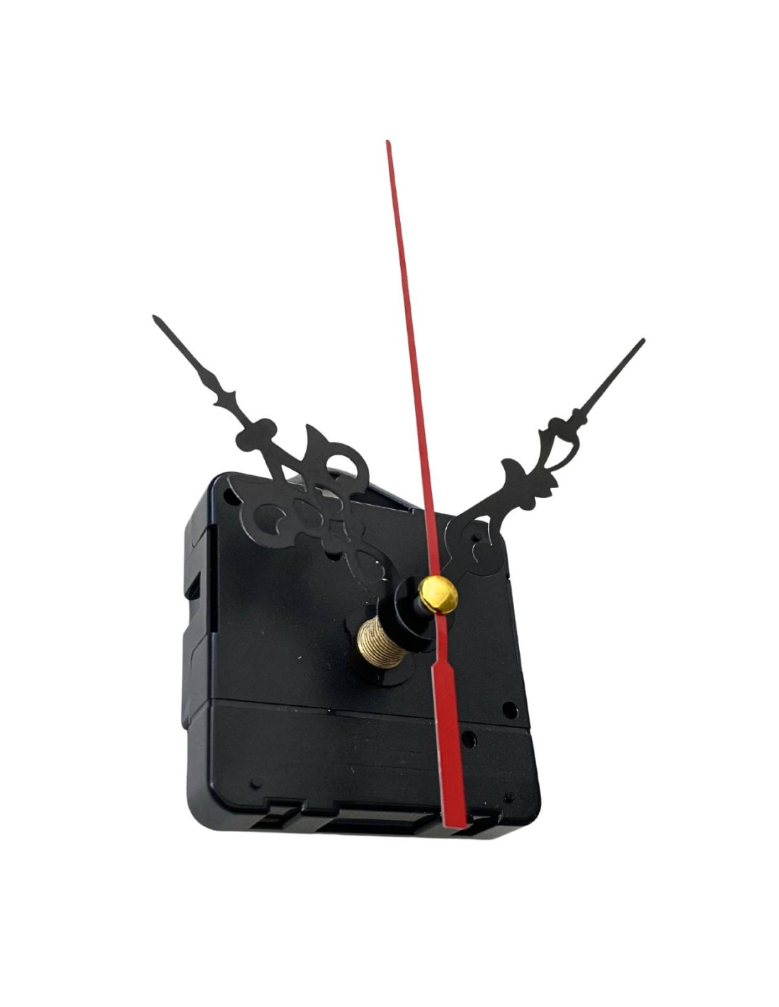 Hliníkové ručičky na nástěnné hodiny v černé barvě s červenou vteřinovou ručičkou.