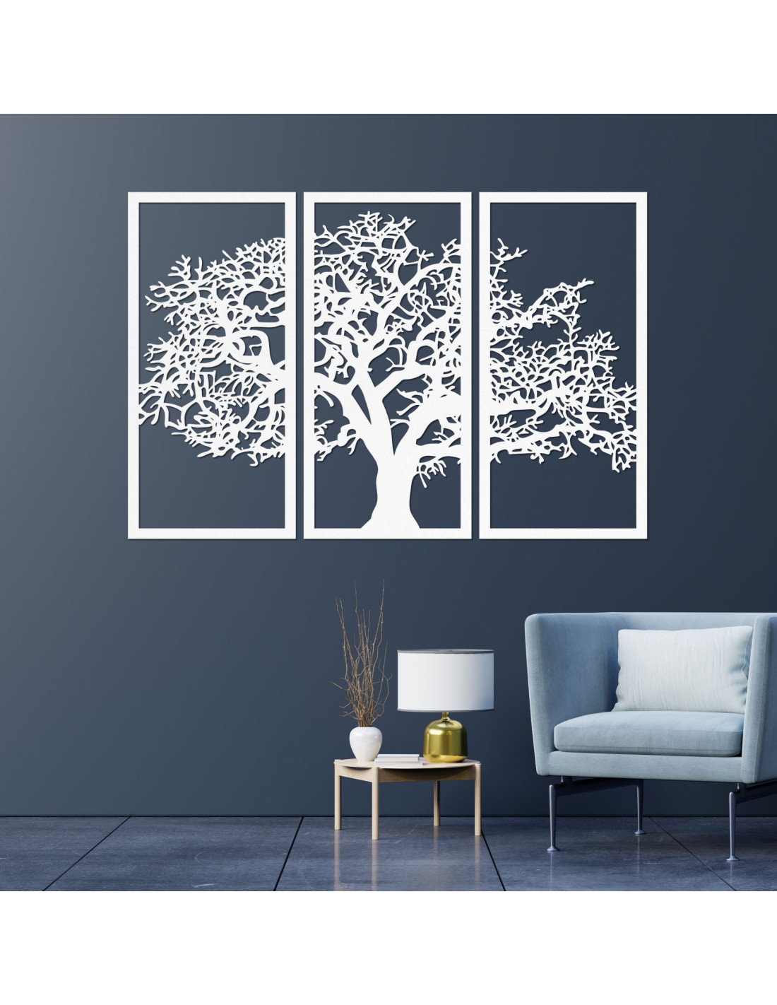 Objevte náš trojdílný obraz s motivem stromu a větví, dokonalé spojení moderního designu a elegance pro váš interiér.