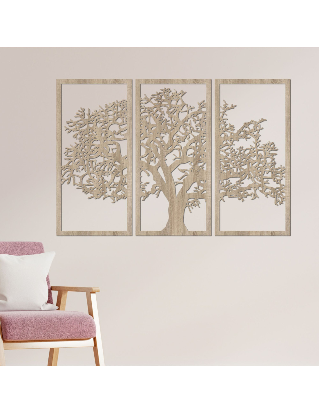 Dřevěné dekorace a výrobky z překližky pro každou příležitost. Říká se, že kolik lidí, tolik chutná. U nás si na své přijde každý. Dřevěný nástěnný obraz Strom života: Sada 3 panelů