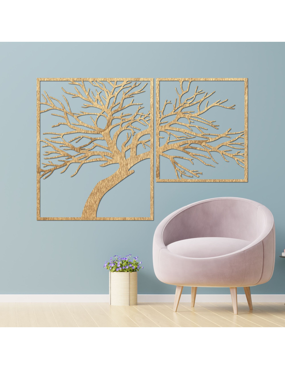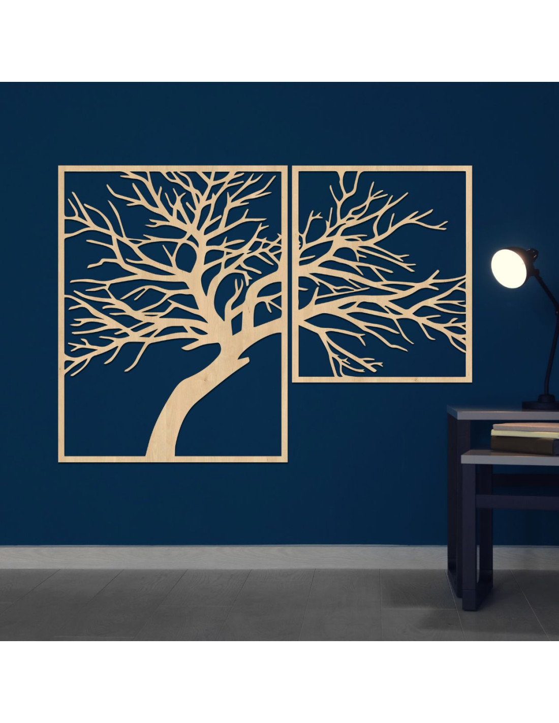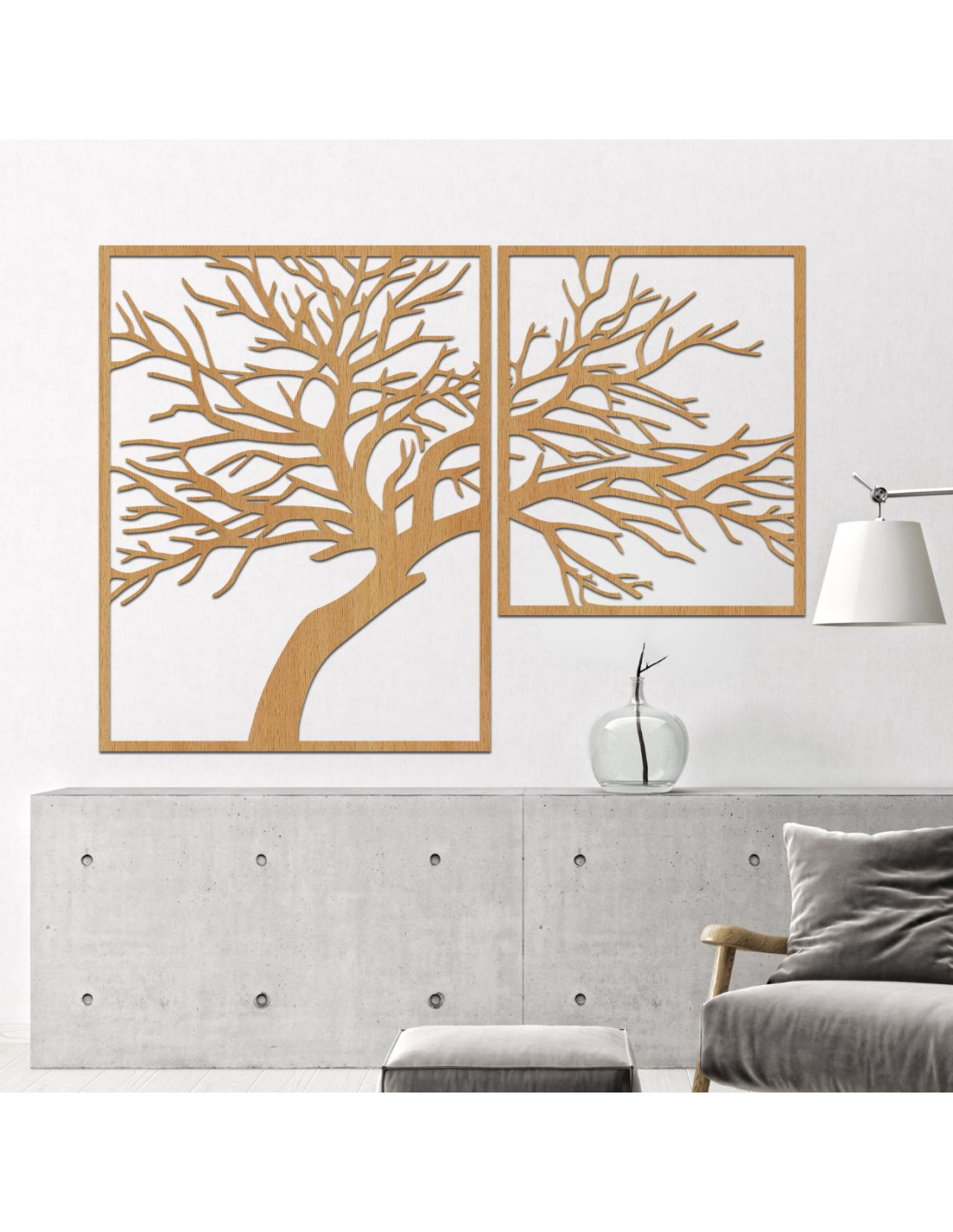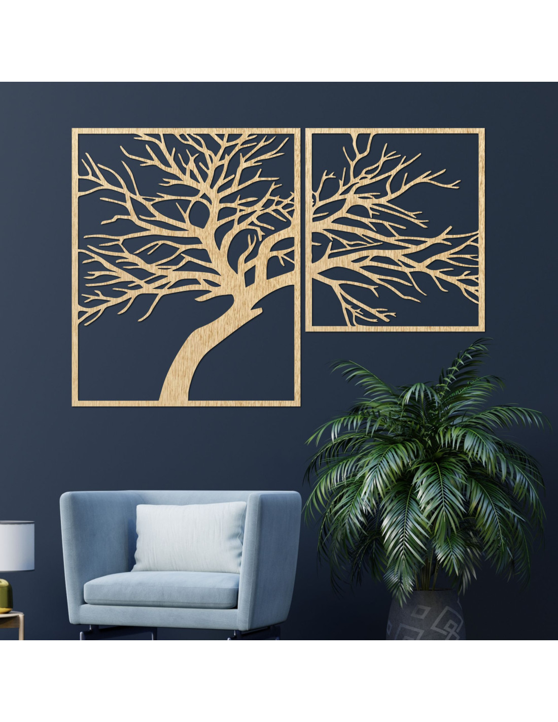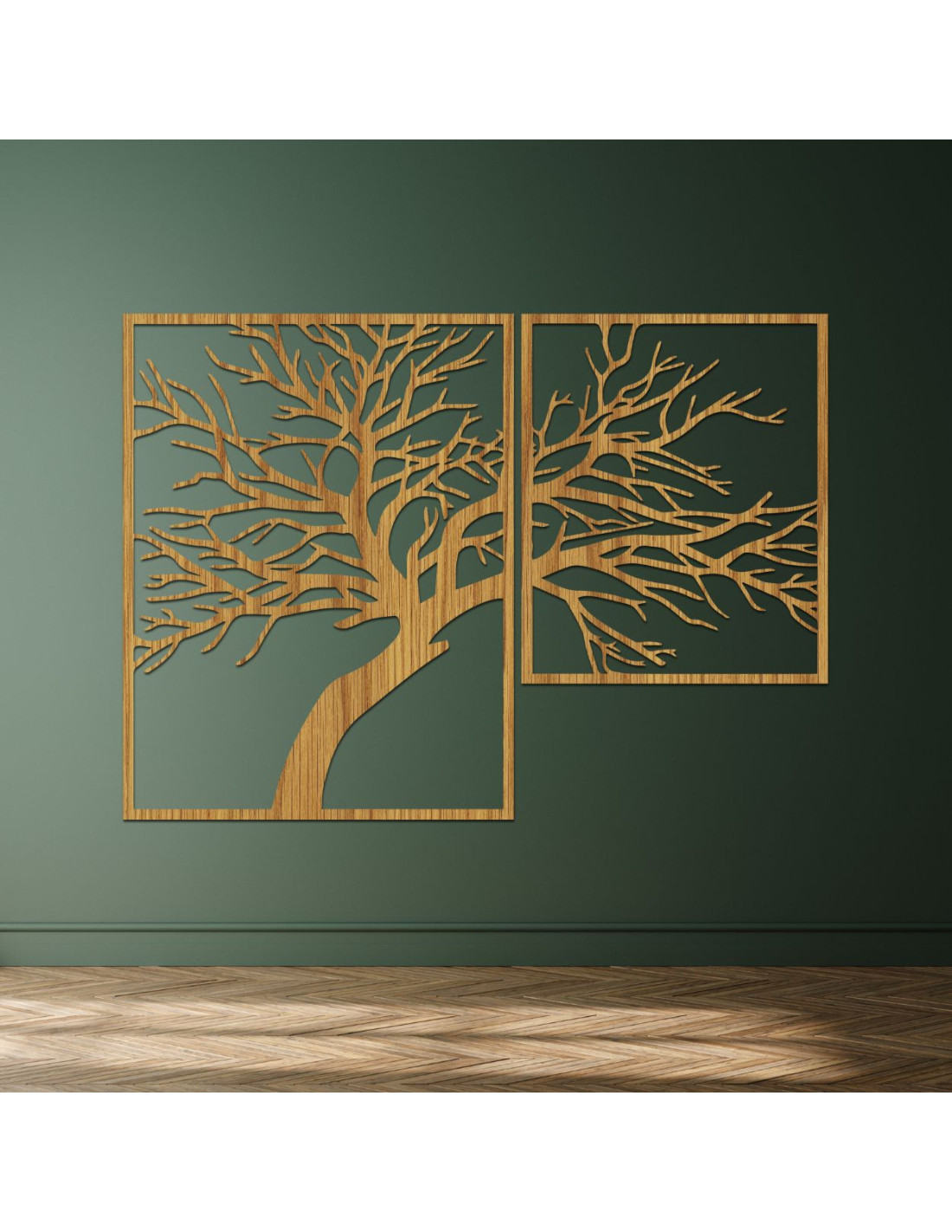 Dvoudílný dřevěný obraz Strom života - jedinečné umělecké dílo, které spojuje přírodní krásu, rovnováhu a moderní design.