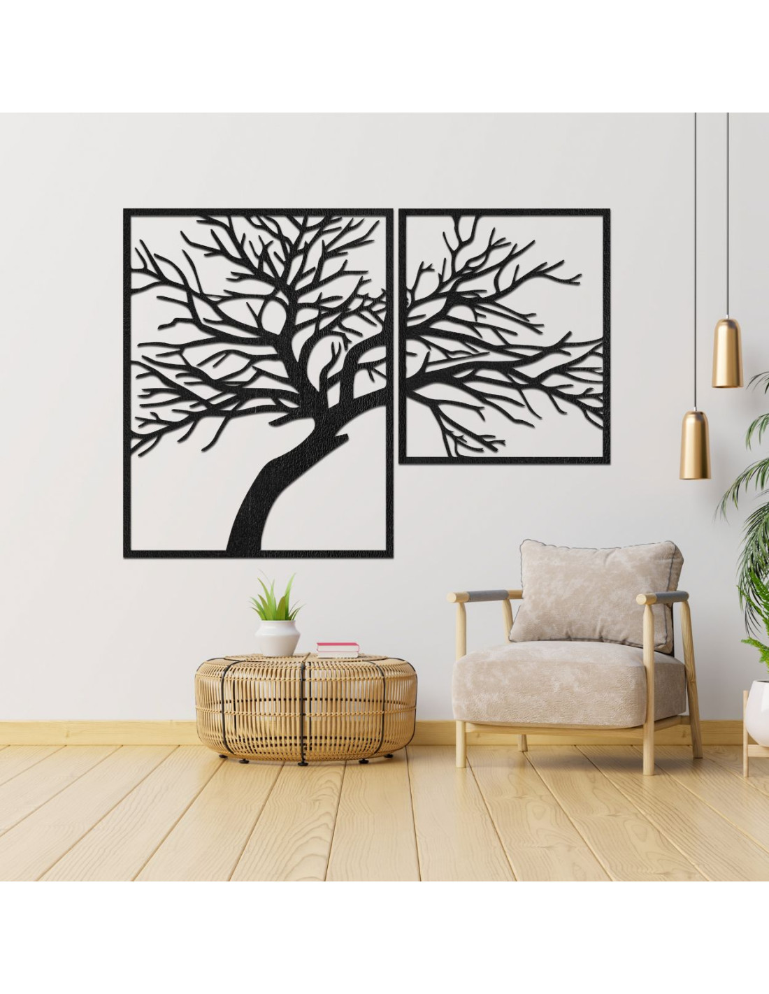 Dvoudílný dřevěný obraz Strom života je výjimečná dekorace, která přemění váš interiér na harmonické místo plné klidu a pozitivní energie.