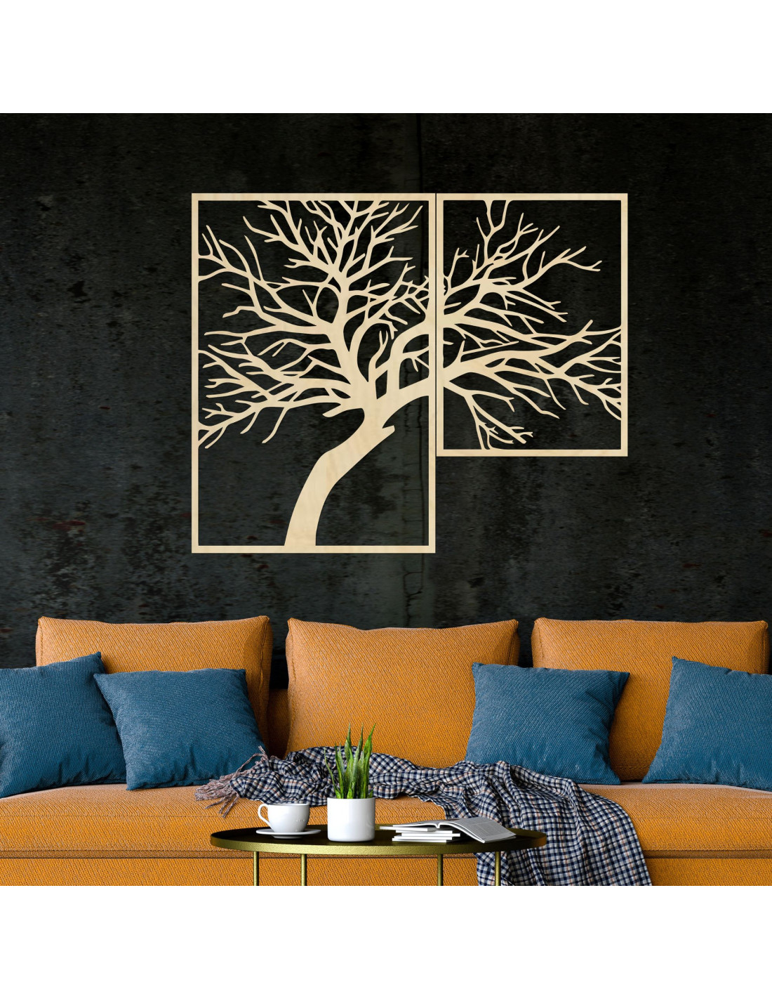 Dvoudílný dřevěný obraz Strom života je výjimečná dekorace, která přemění váš interiér na harmonické místo plné klidu a pozitivní energie.