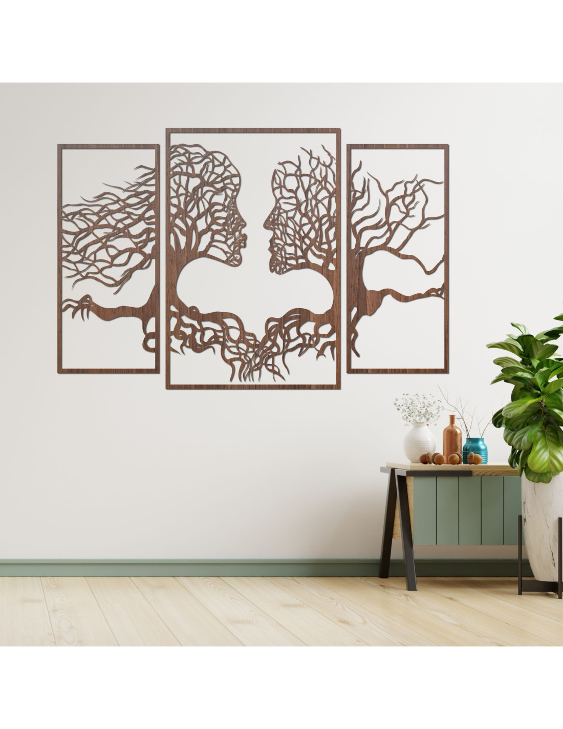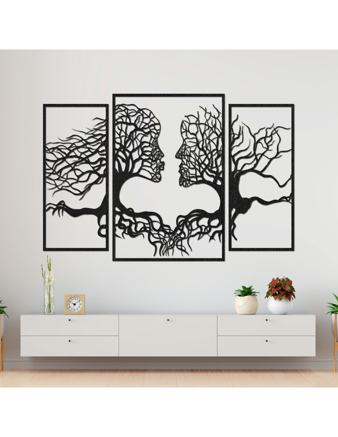 SentopTřídílný obraz zachycuje jedinečné propojení člověka a přírody, kde se siluety stromů přirozeně prolínají s lidskými tvářemi . Jemná kompozice působí harmonicky a podněcuje k zamyšlení nad naším vztahem k přírodě ik sobě navzájem.